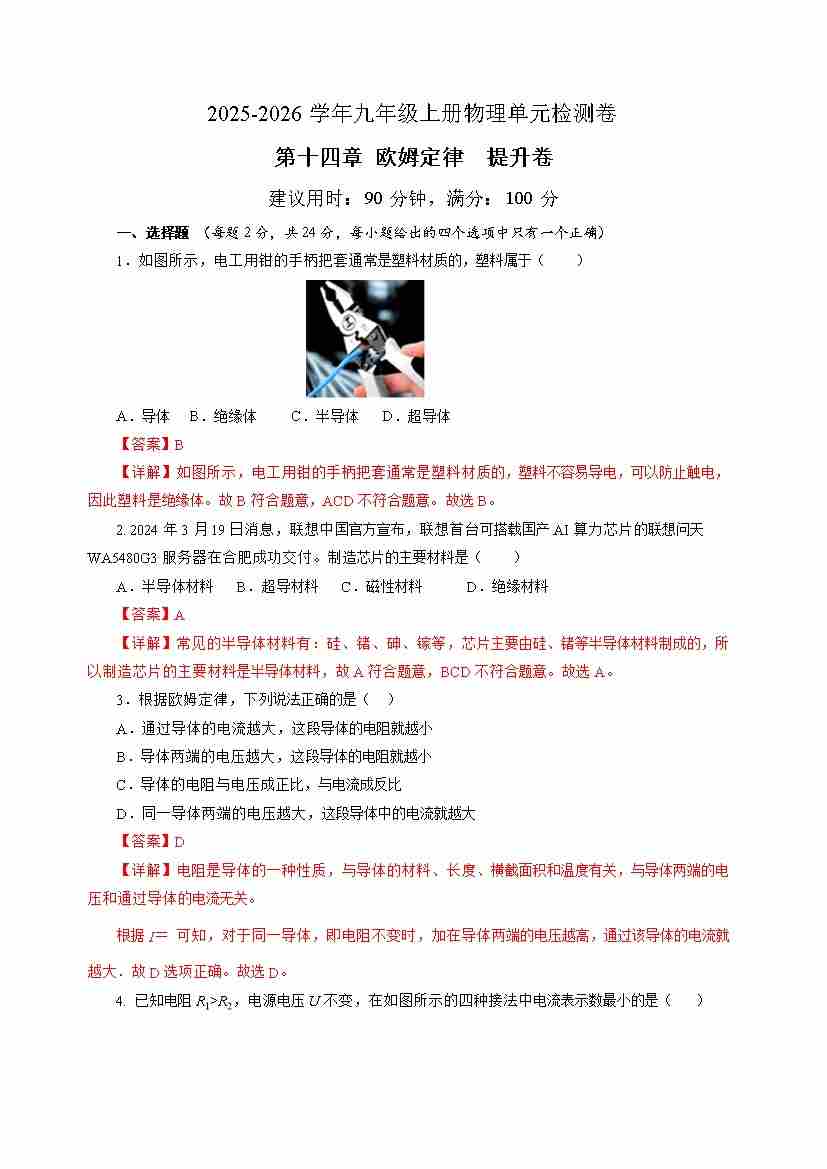 第十四章 欧姆定律 单元测试·提升卷(解析版)