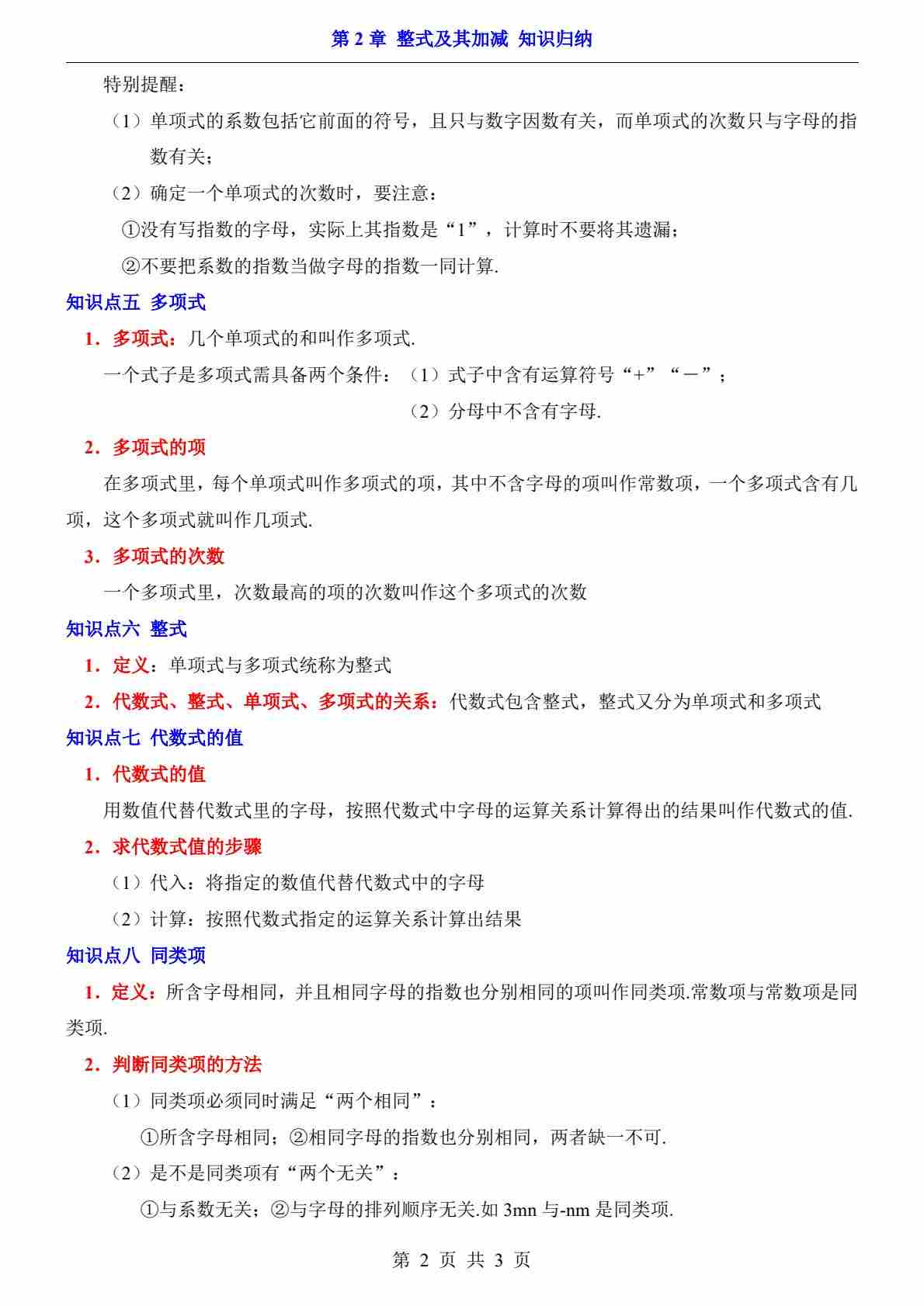 首页 > 全部 > 知识梳理 > 第2章 整式及其加减(知识归纳)