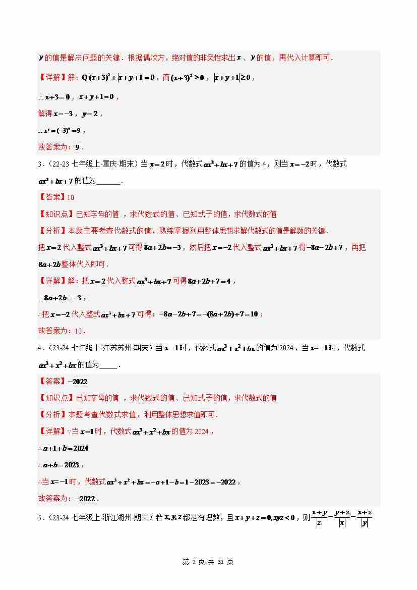 首页 > 全部 > 专题突破 > 专题03 整式及其加减(考题猜想,易错必刷35题6种题型)(解析版)