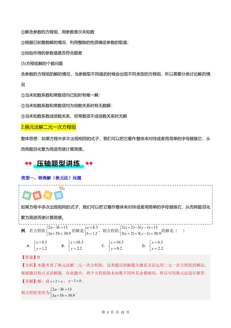 首页 > 全部 > 常考压轴题 > 专题10二元一次方程(组)中四类特殊解问题-解析版