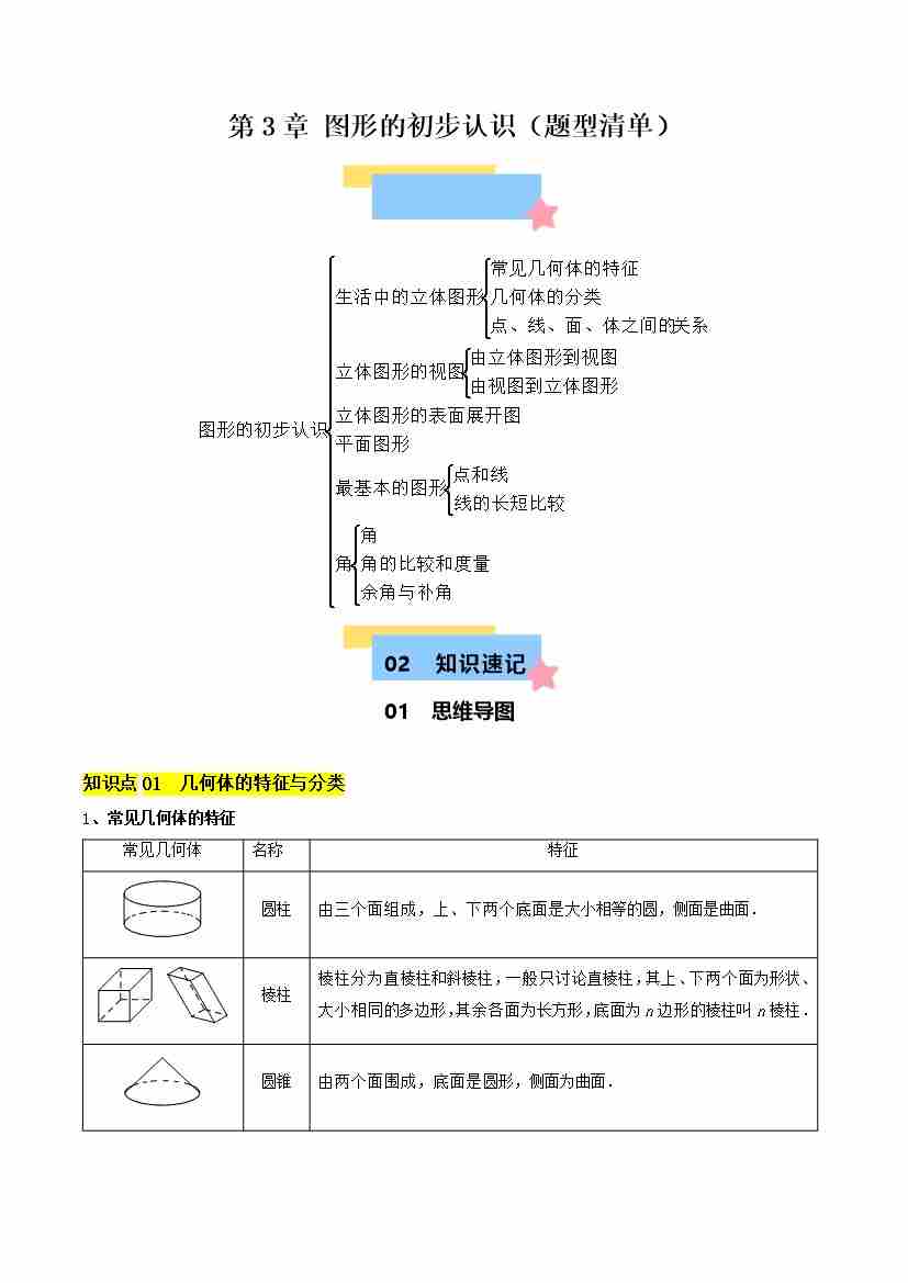 首页 > 全部 > 单元题型 > 第3章 图形的初步认识(13类题型清单)(解析版)-2024-2025学年七年级数学上册单元速记·巧练(华东师大版2024)