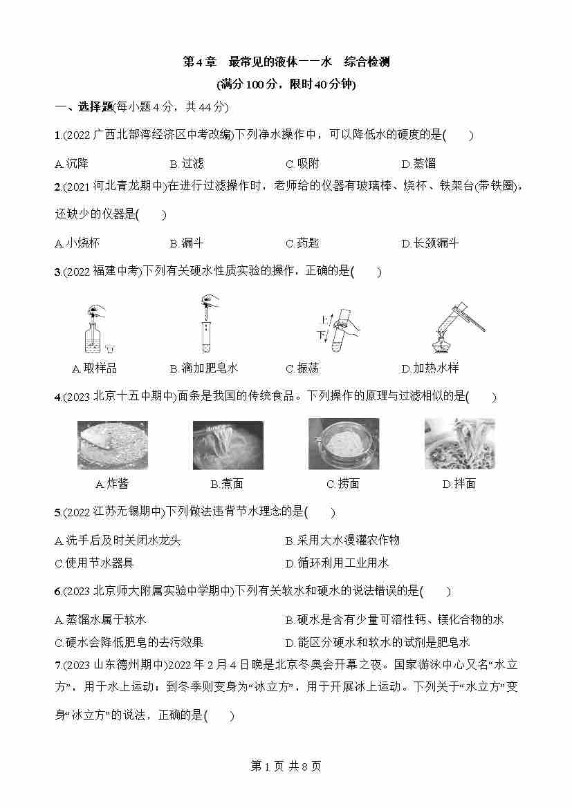 第4章 最常见的液体——水 综合检测
