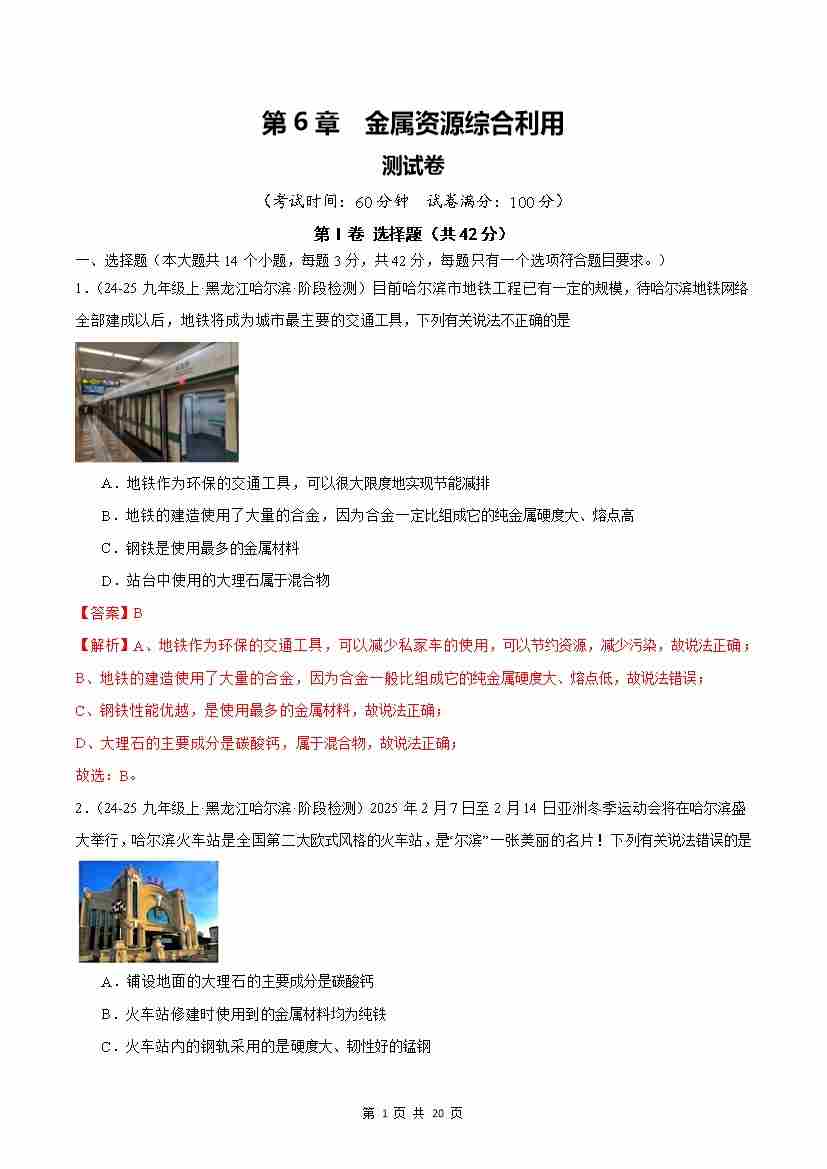 首页 > 全部 > 单元试卷 > 第6章 金属资源综合利用【单元卷·测试卷】(解析版)