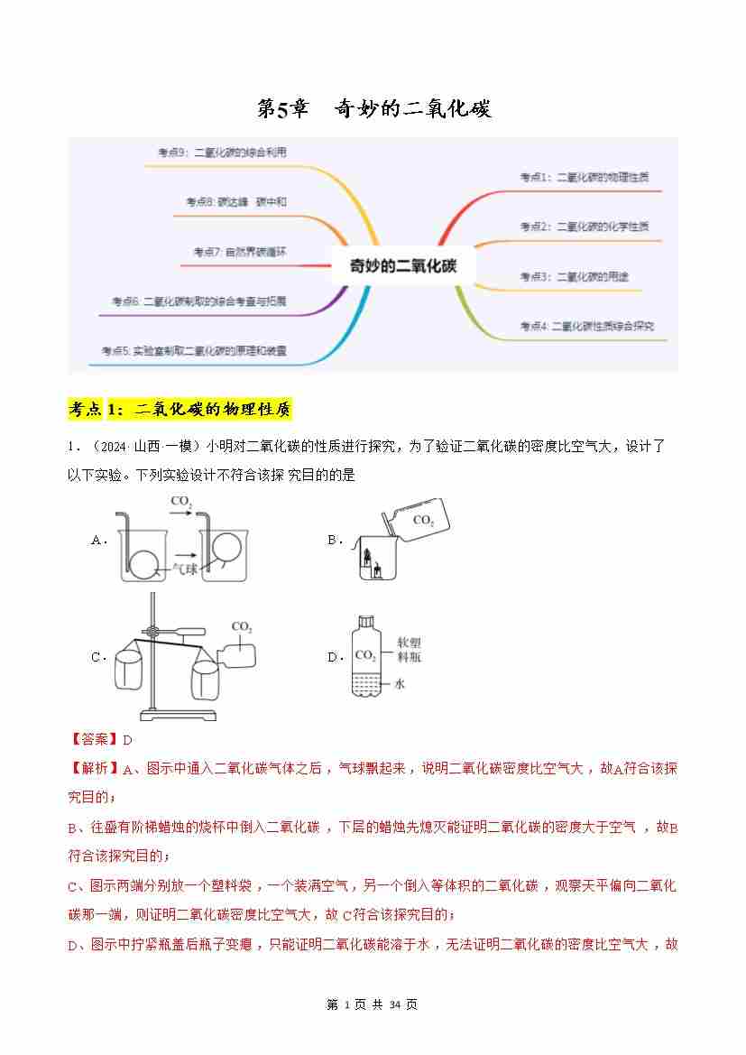 首页 > 全部 > 单元试卷 > 第5章 奇妙的二氧化碳【单元卷·考点卷】(解析版)