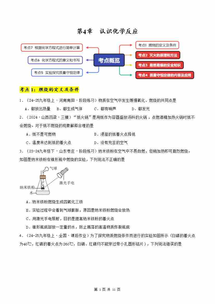 第4章 认识化学反应【单元卷·考点卷】(原卷版)
