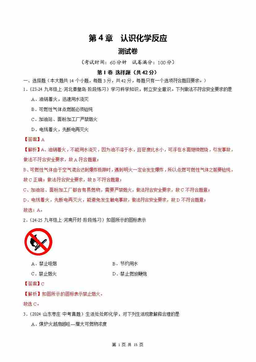 第4章 认识化学反应【单元卷·测试卷】(解析版)