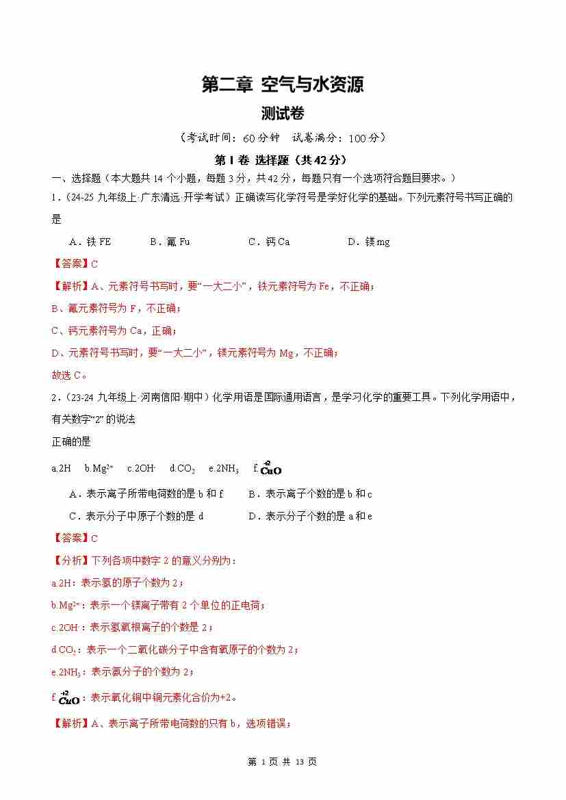 首页 > 全部 > 单元试卷 > 第3章 物质构成的奥秘【单元卷·测试卷】(解析版)