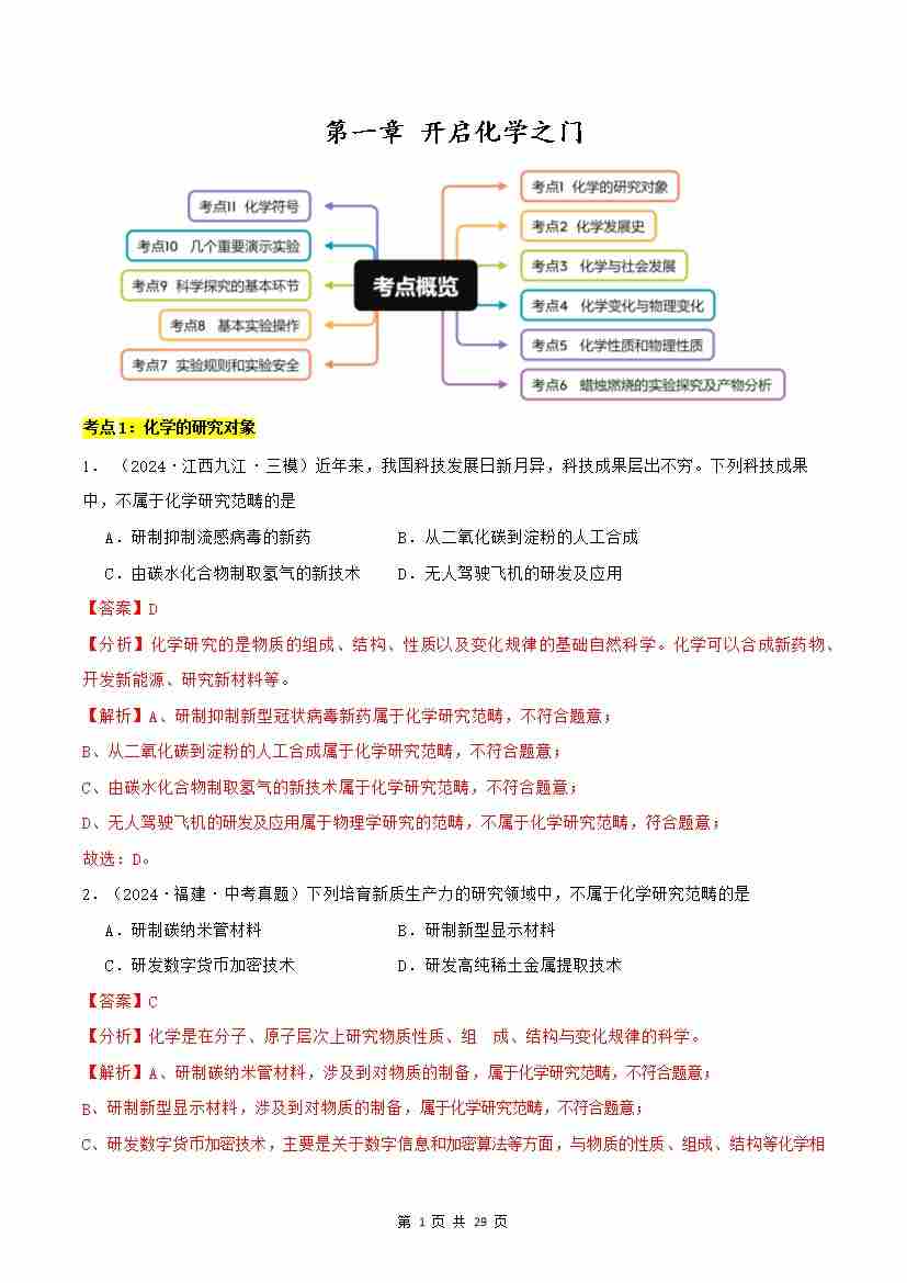 首页 > 全部 > 单元试卷 > 第1章 开启化学之门【单元卷·考点卷】(解析版)