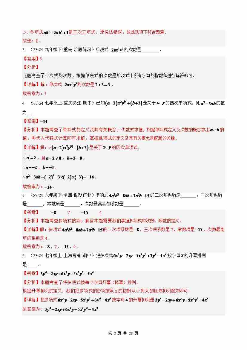 首页 > 全部 > 暑假自学课 > 第16讲 整式及其加减章末九大题型总结(培优篇)(解析版)