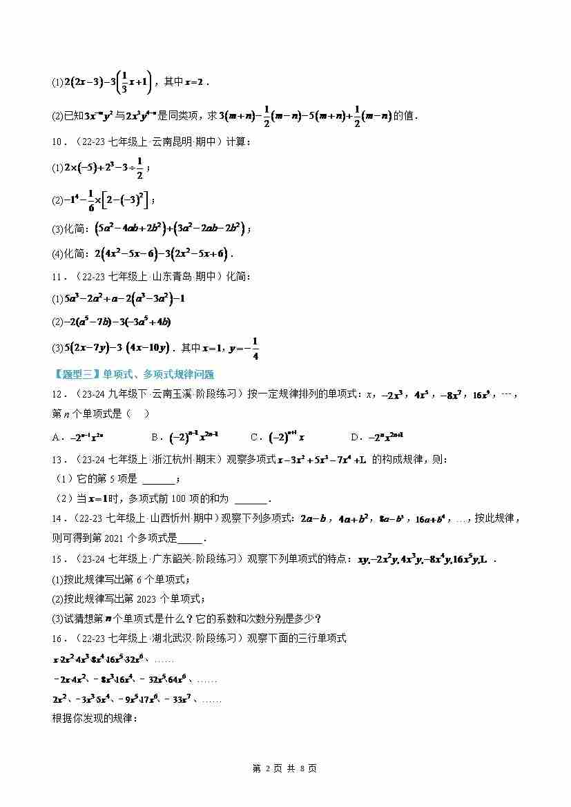 首页 > 全部 > 暑假自学课 > 第16讲 整式及其加减章末九大题型总结(培优篇)(原卷版)