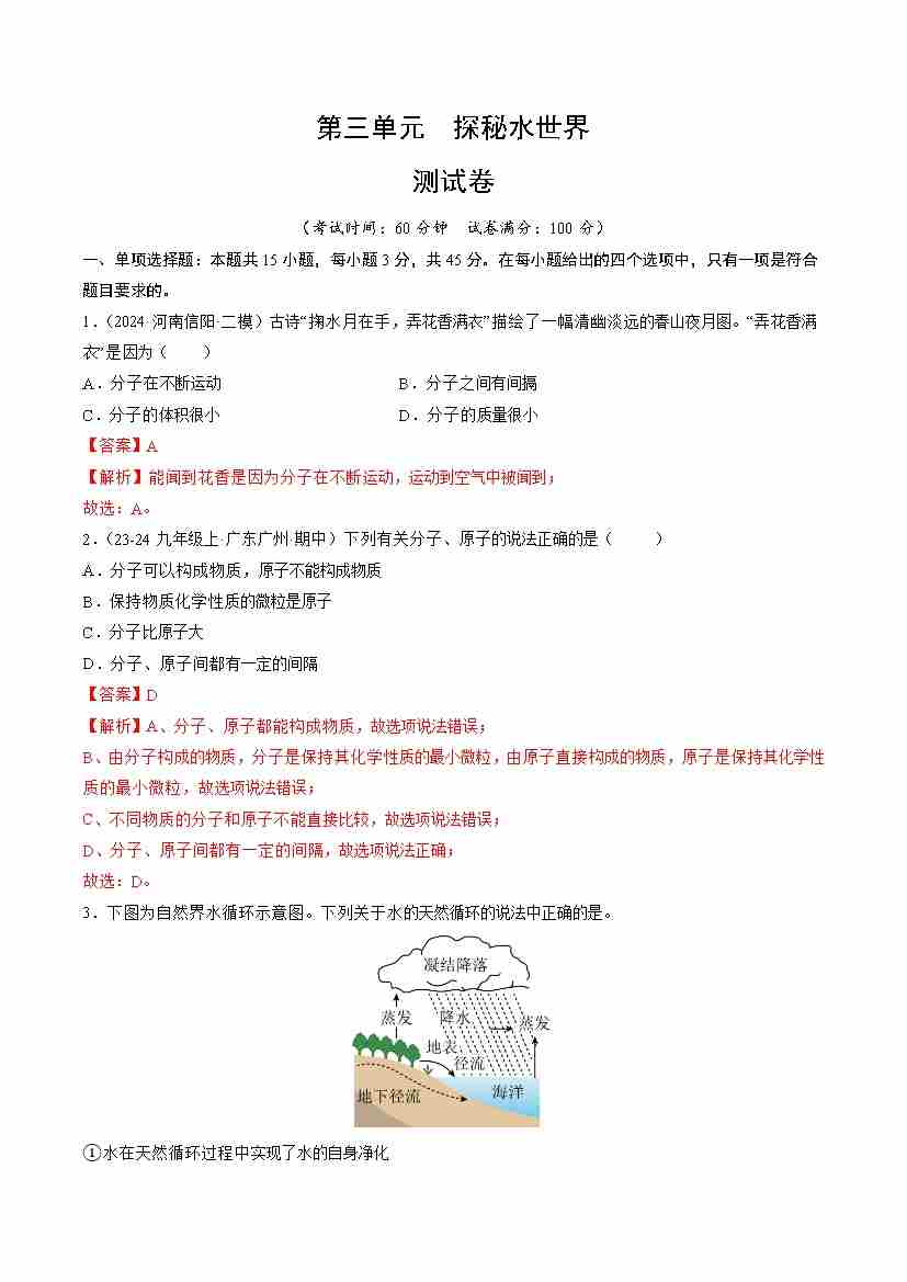 首页 > 全部 > 单元测试卷 > 第三单元 探秘水世界【单元卷·测试卷】(解析版)