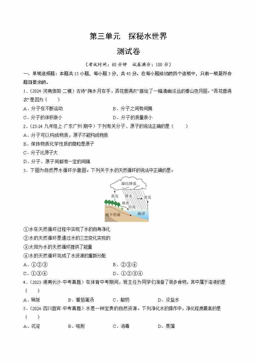 首页 > 全部 > 单元测试卷 > 第三单元 探秘水世界【单元卷·测试卷】(原卷版)