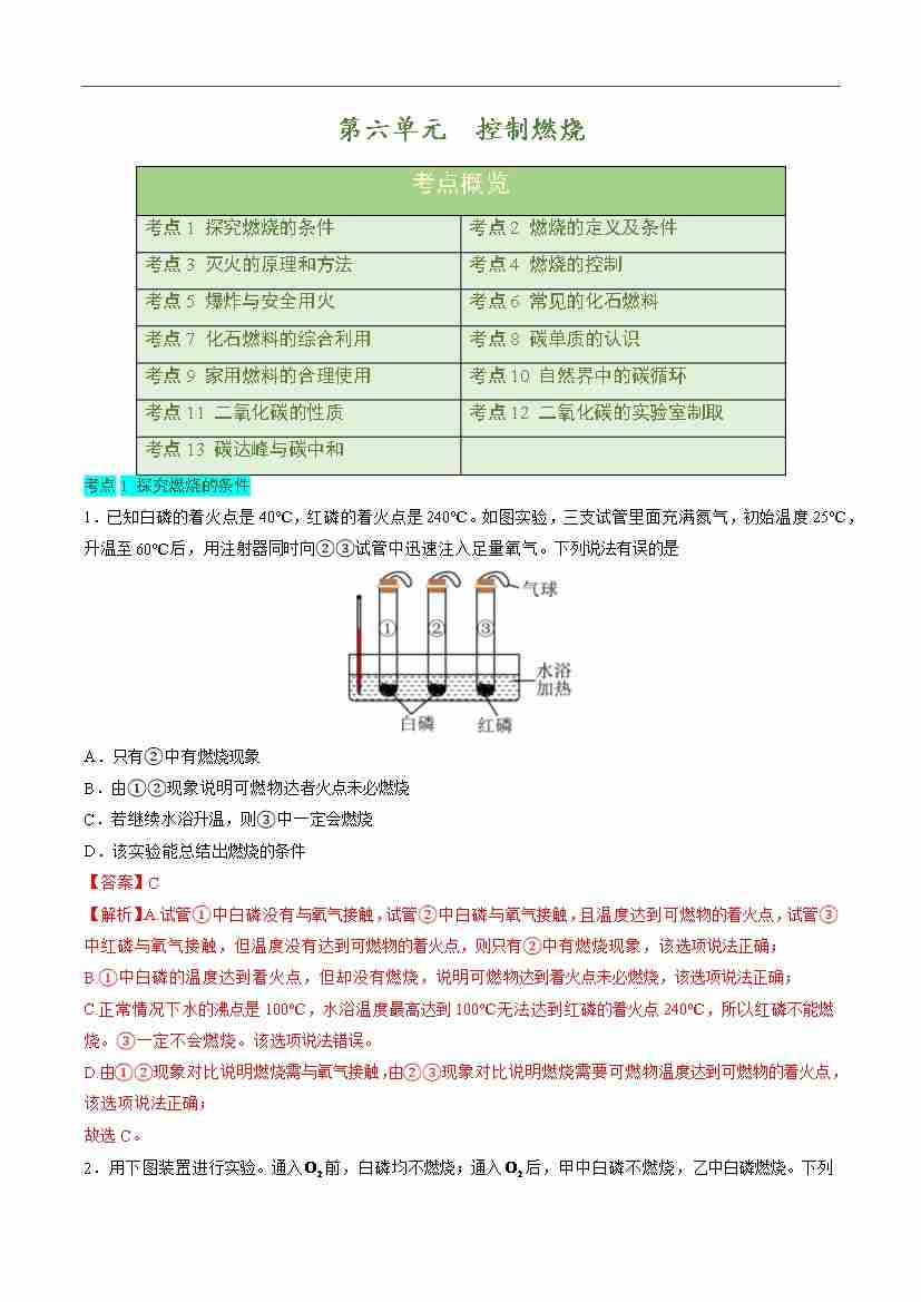 第六单元 控制燃烧【单元卷·考点卷】(解析版)
