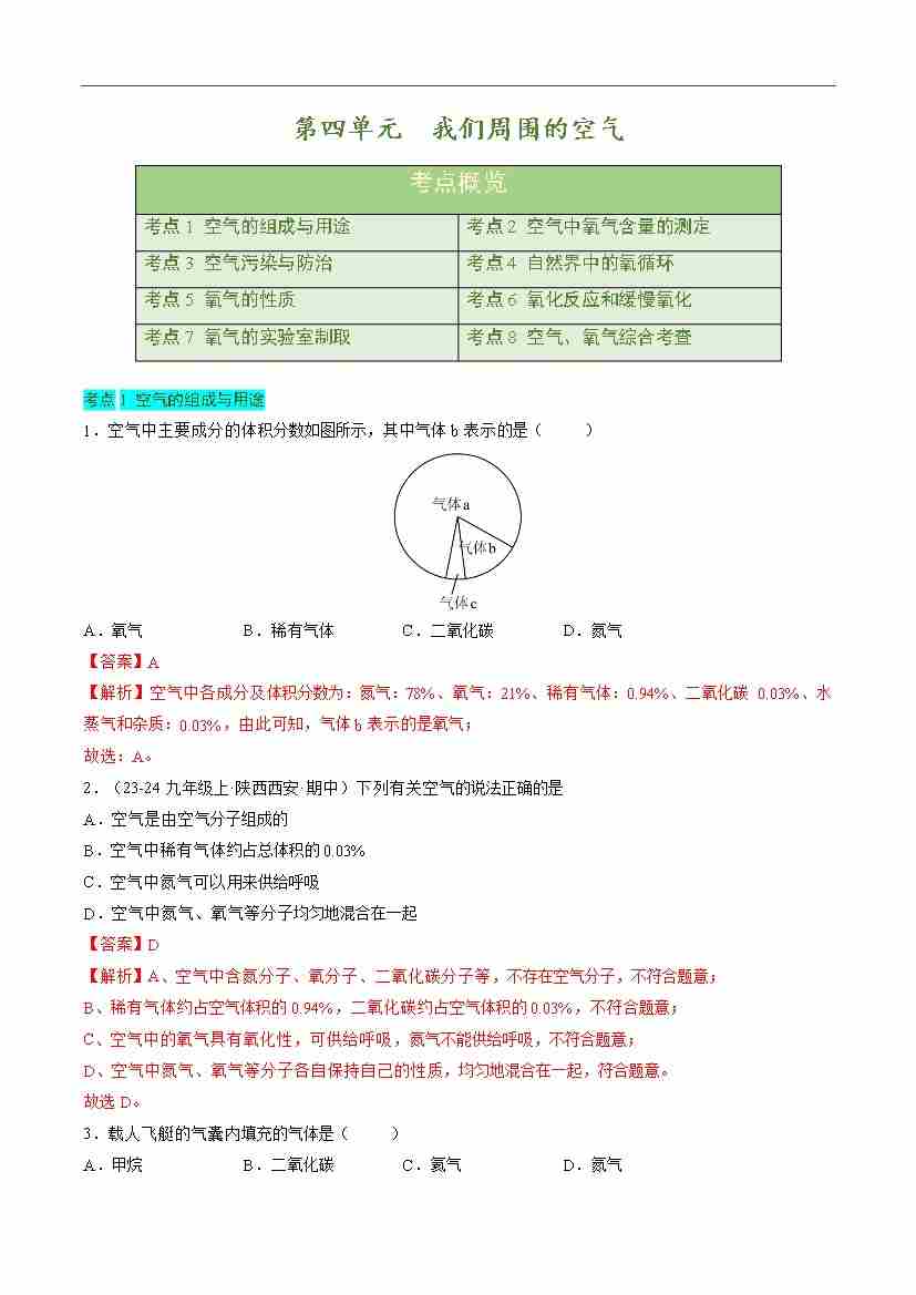 第四单元 我们周围的空气【单元卷·考点卷】(解析版)
