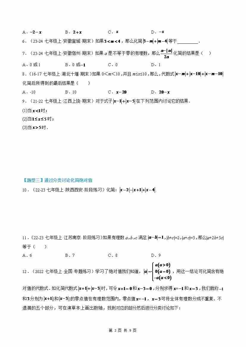 首页 > 全部 > 暑假自学课 > 第08讲 绝对值贯穿有理数的十大经典题型(原卷版)