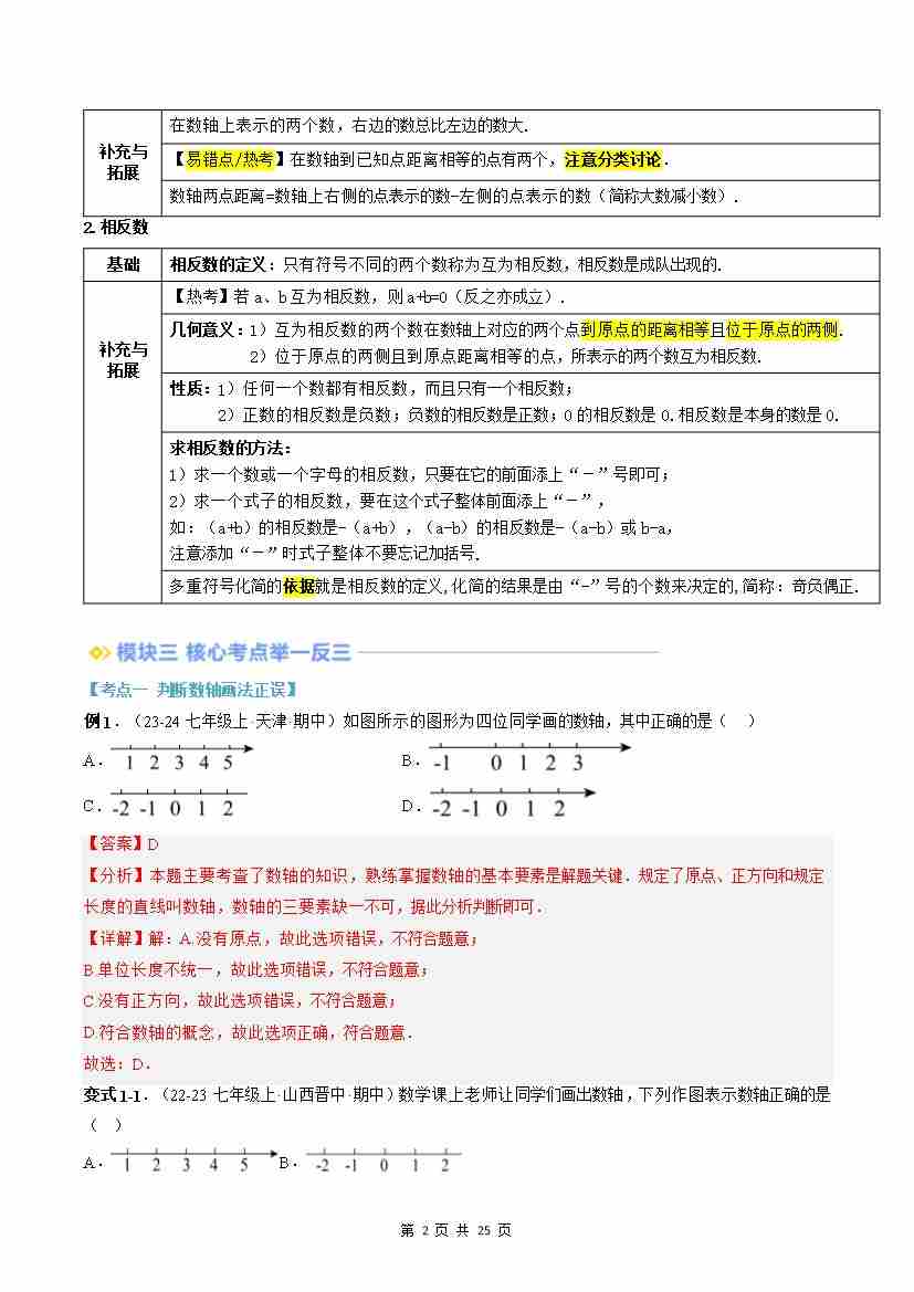 第02讲 数轴与相反数(解析版)