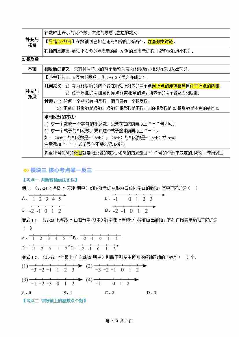 首页 > 全部 > 暑假自学课 > 第02讲 数轴与相反数(原卷版)