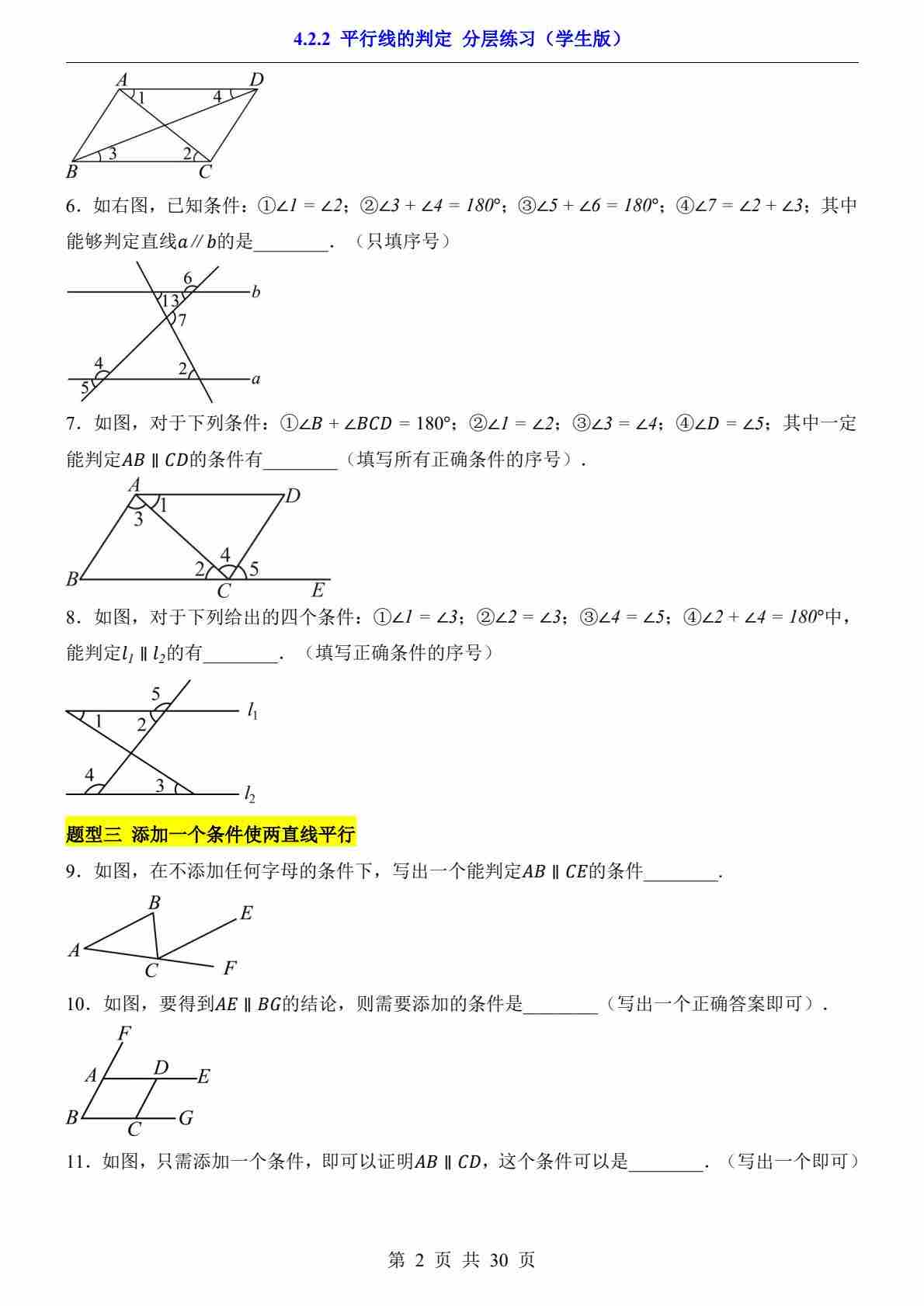 首页 > 全部 > 一课一练 > 4.2.2 平行线的判定(分层练习)