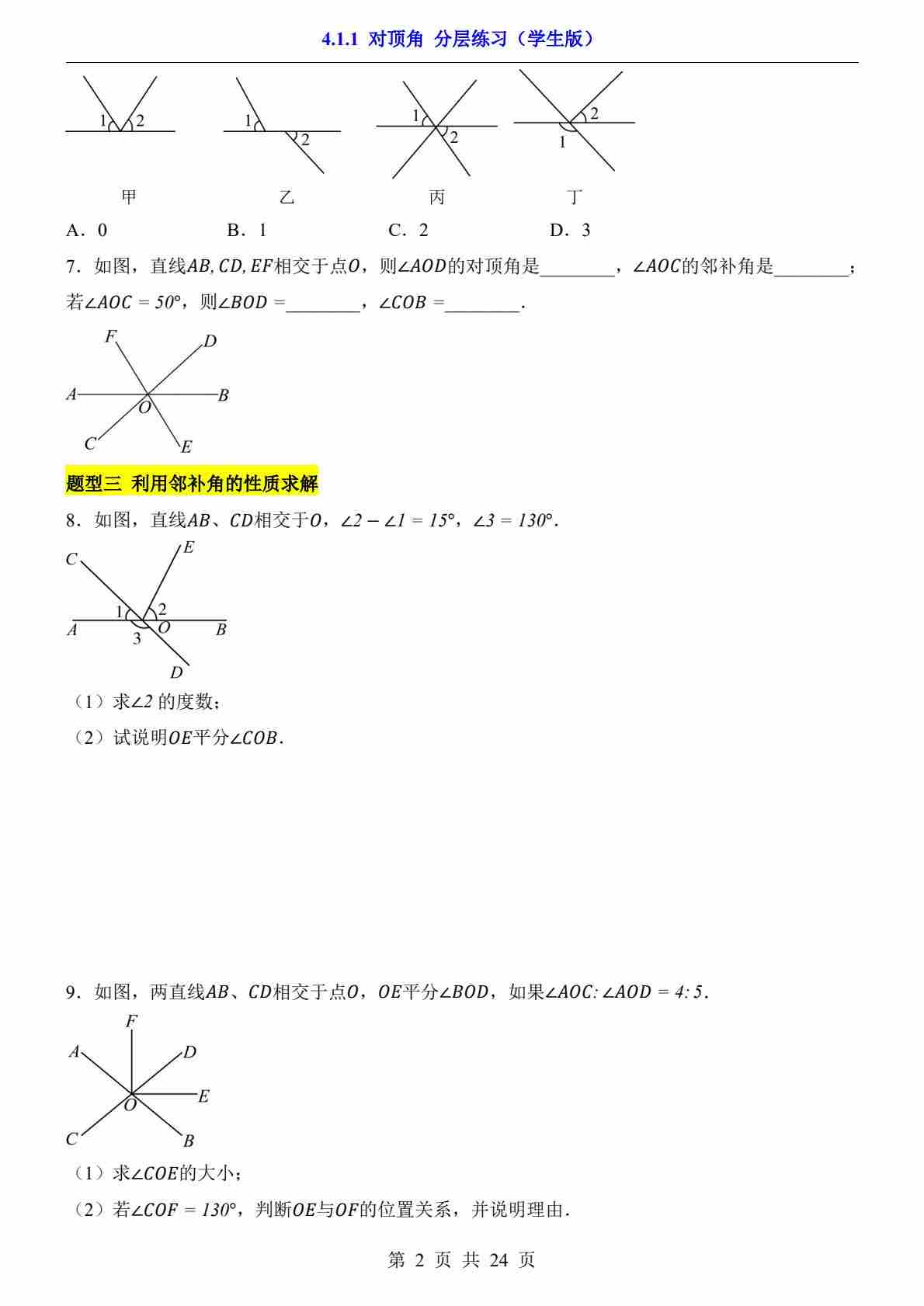 首页 > 全部 > 一课一练 > 4.1.1 对顶角(分层练习)