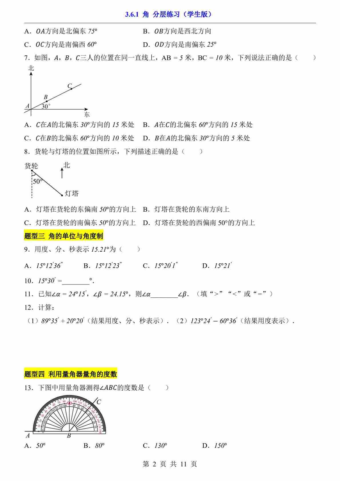 3.6.1 角(分层练习)