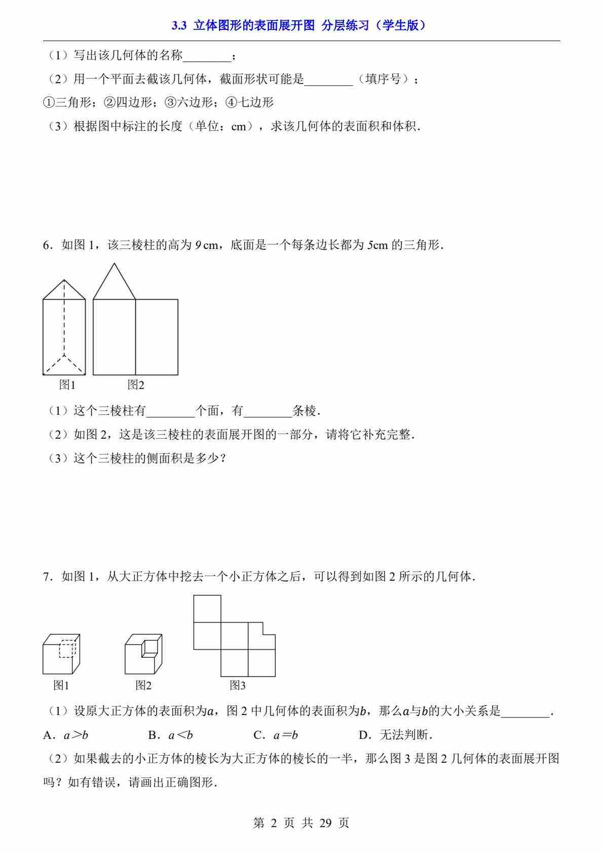 首页 > 全部 > 一课一练 > 3.3 立体图形的表面展开图(分层练习)