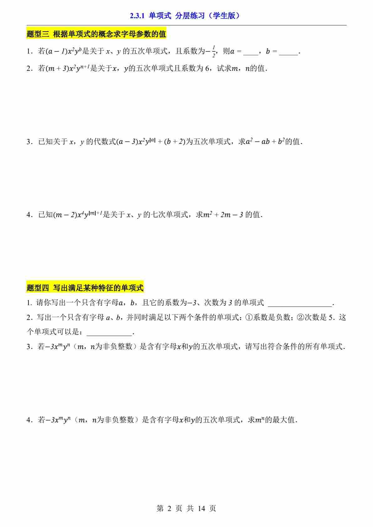 2.3.1 单项式(分层练习)