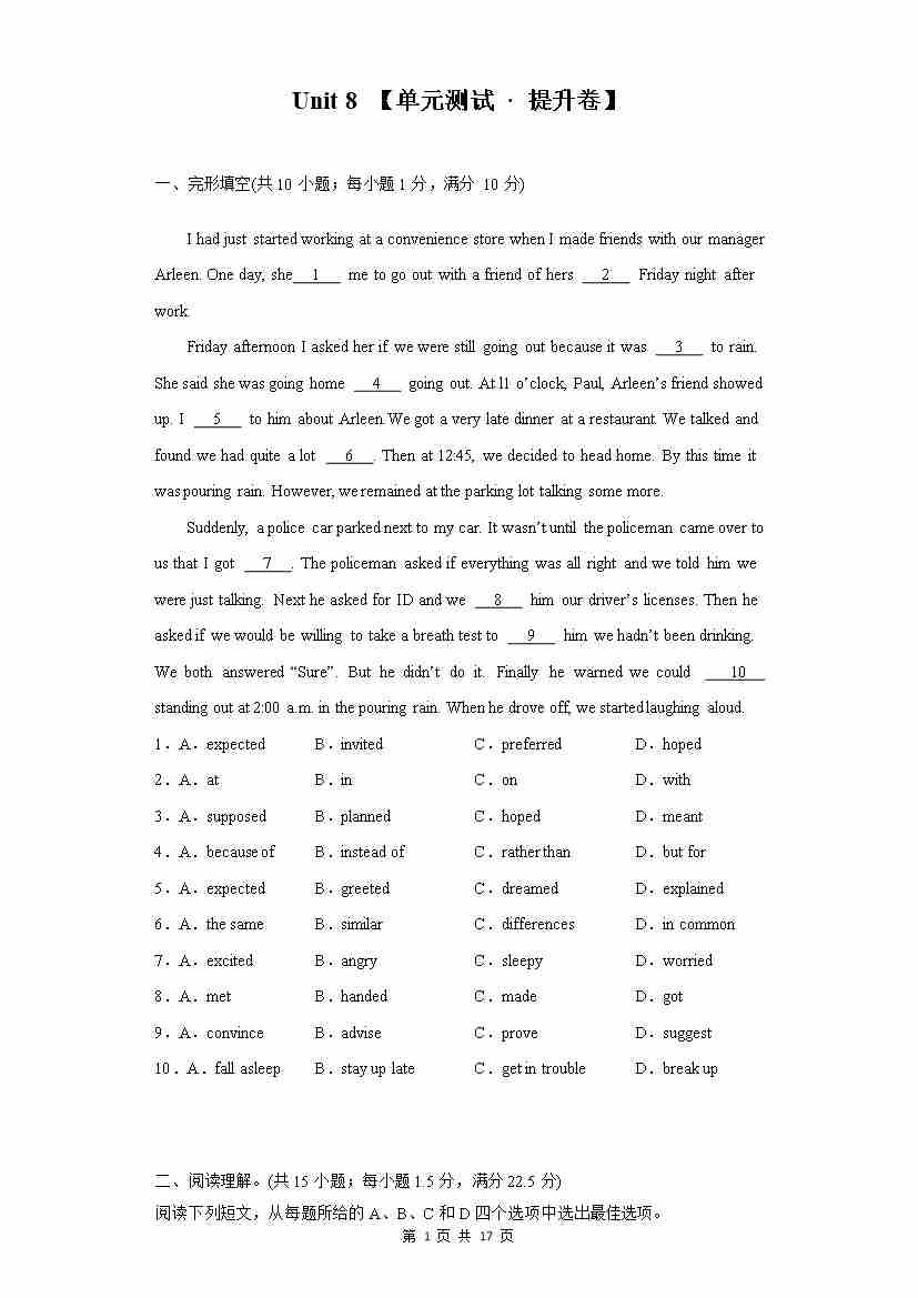 Unit 8 【单元测试 · 提高卷】