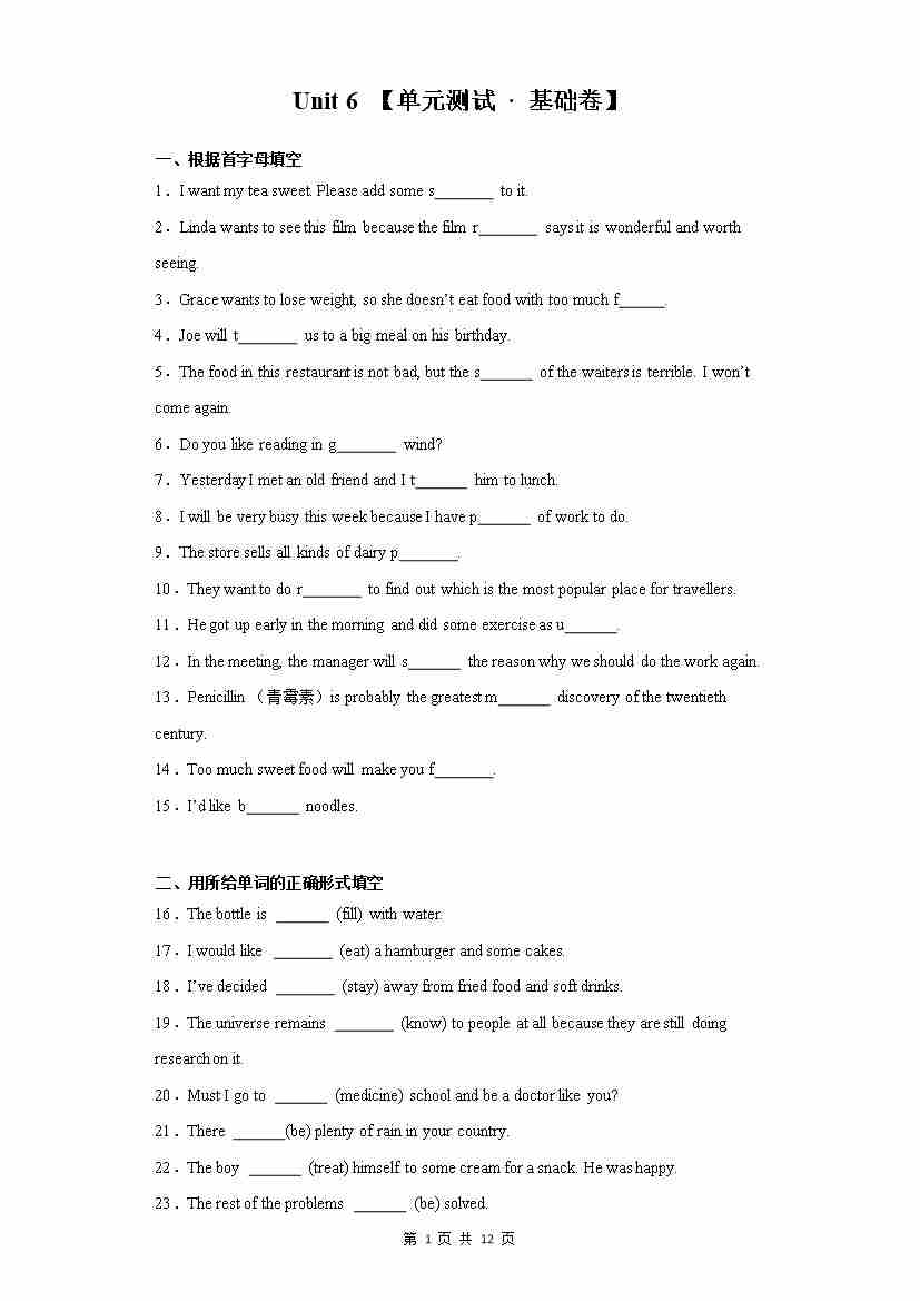 首页 > 全部 > 单元速记 > Unit 6 【单元测试 · 基础卷】