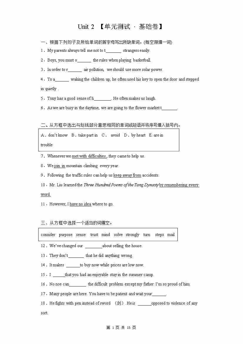 Unit 2【单元测试 · 基础卷】