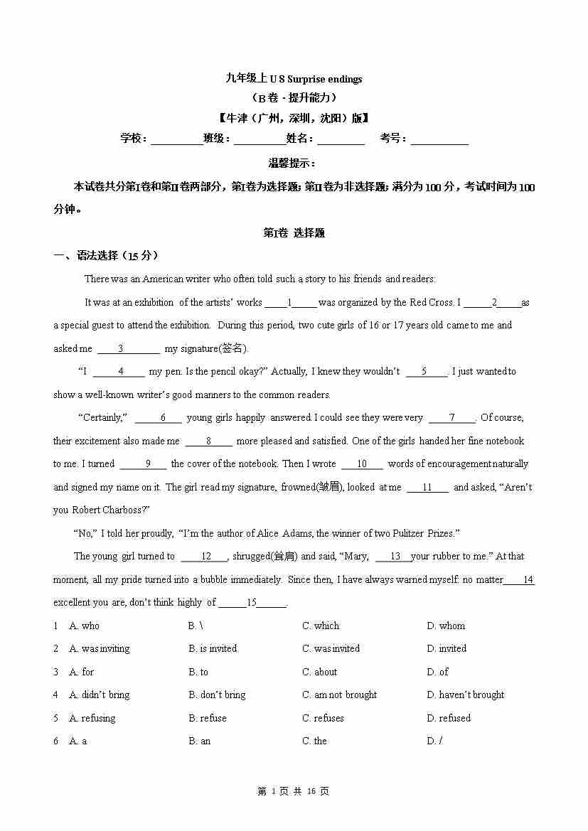 首页 > 全部 > 单元AB卷 > 9.2 U8 Surprise endings (B卷·提升能力) 解析版