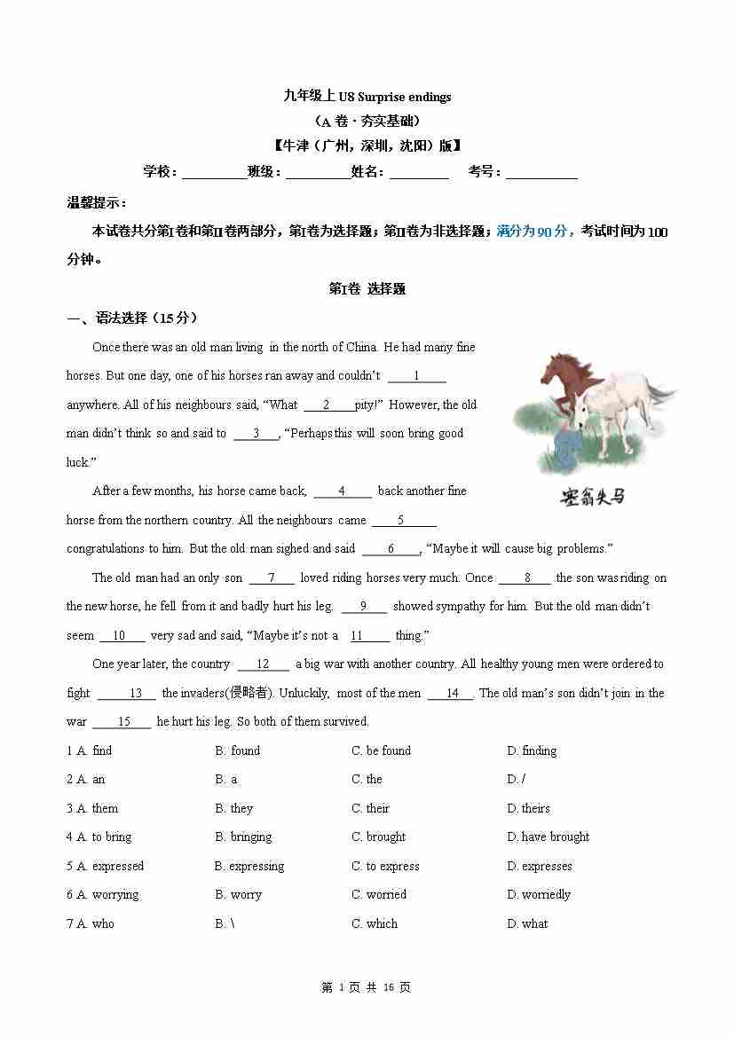 9.1 U8 Surprise endings (A卷·夯实基础) 解析版