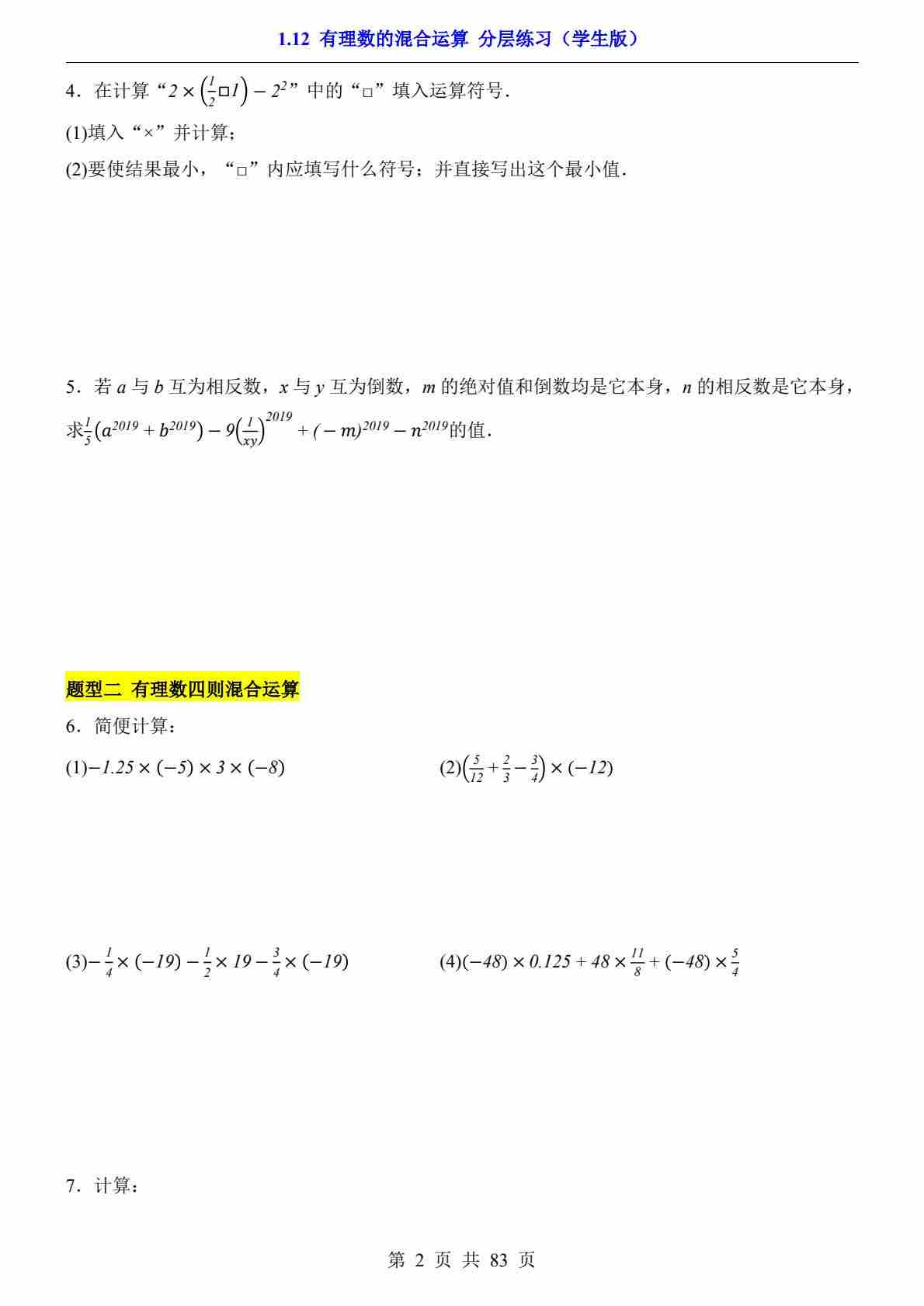 首页 > 全部 > 一课一练 > 1.12 有理数的混合运算(分层练习)