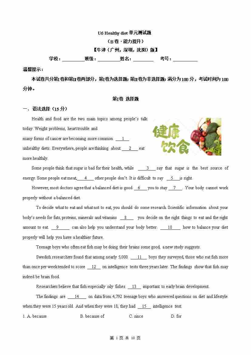 7.2 U6 Healthy diet(B卷·能力提升) 原卷版