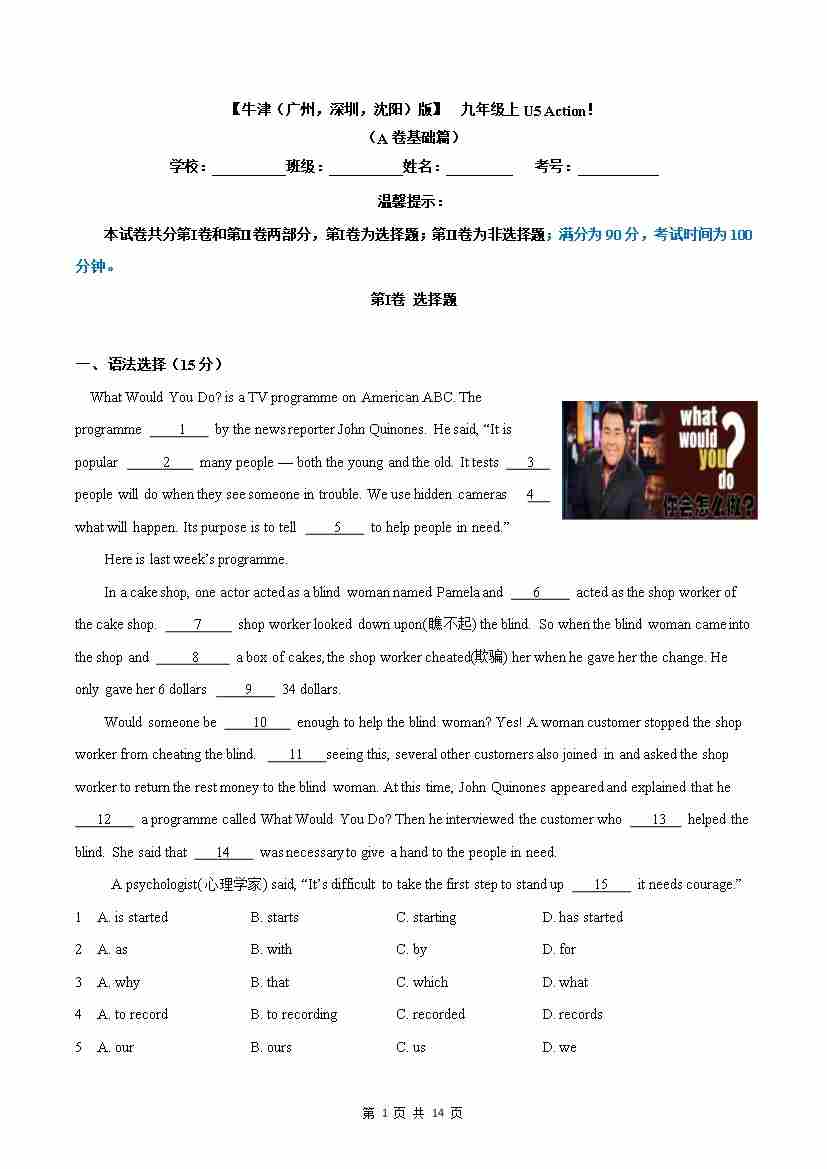 6.1 U5 Action!(A卷·夯实基础)解析版