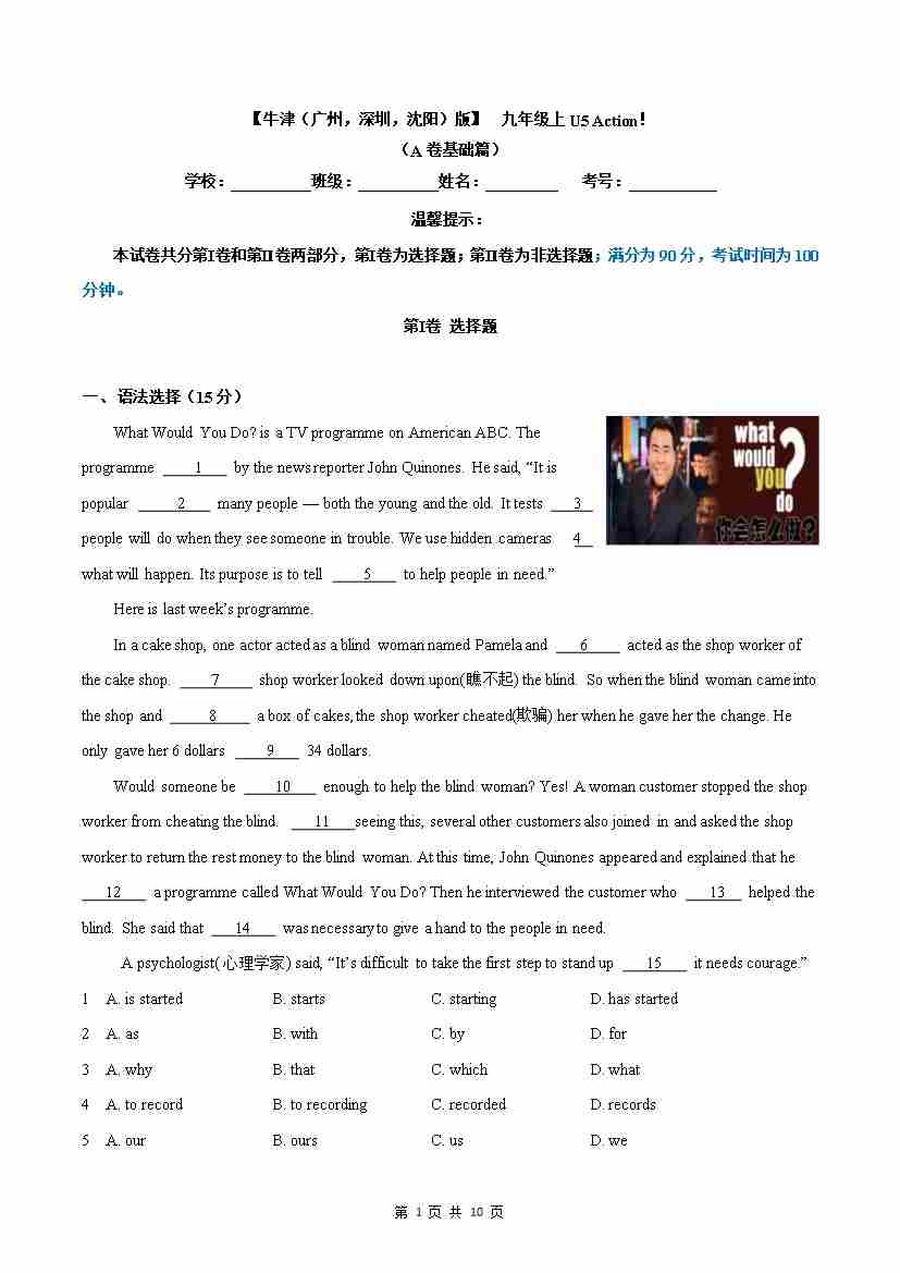 首页 > 全部 > 单元AB卷 > 6.1 U5 Action!(A卷·夯实基础)原卷版