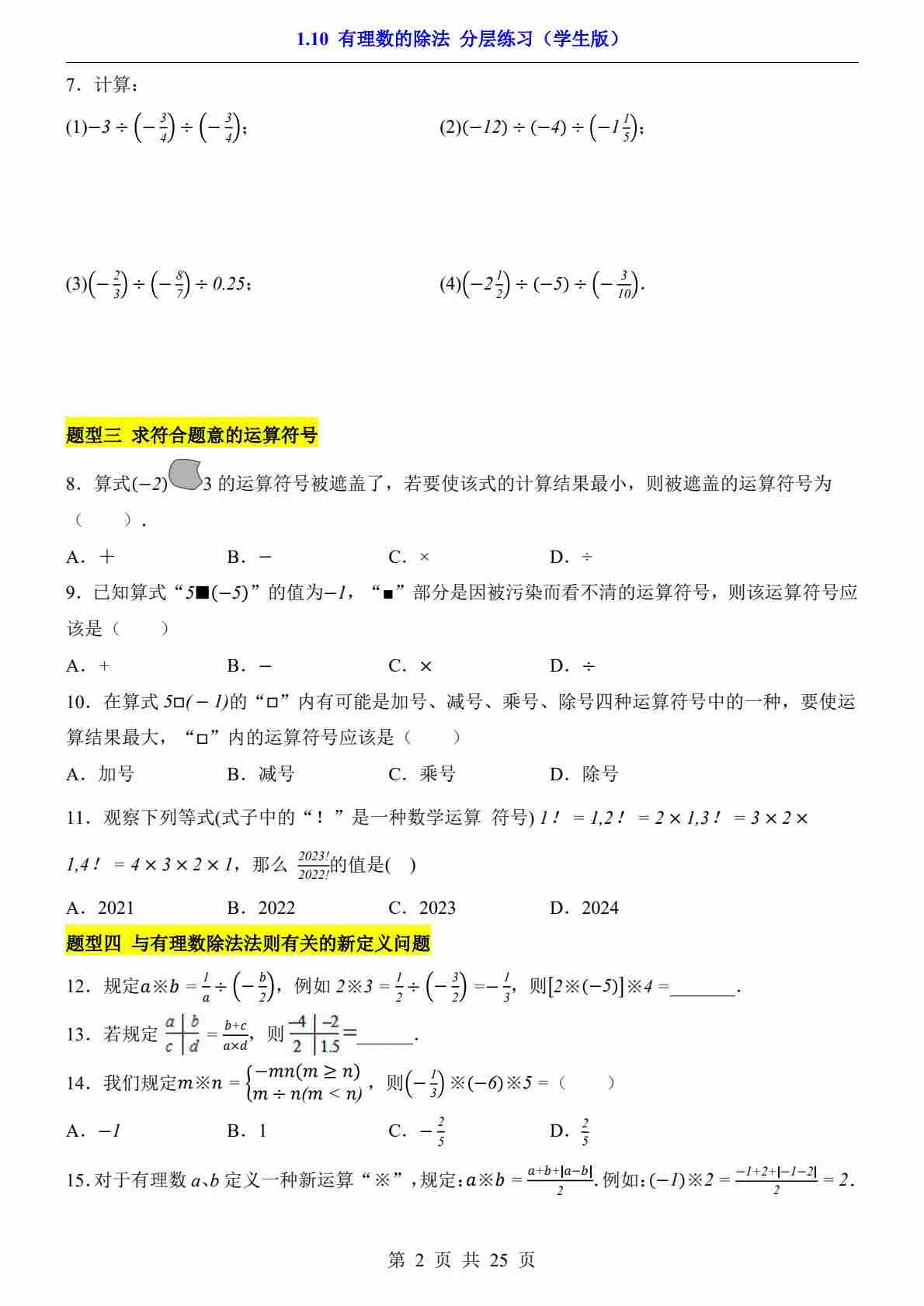 首页 > 全部 > 一课一练 > 1.10 有理数的除法(分层练习)