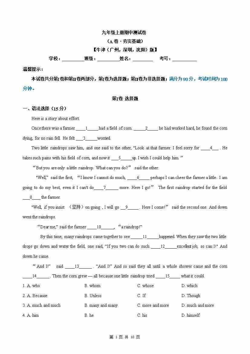 5.1 九年级上册期中测试卷 (A基·夯实基础) 原卷版