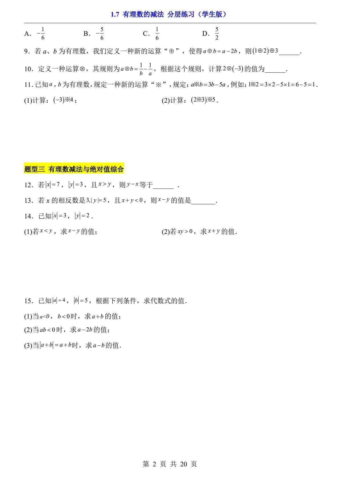 首页 > 全部 > 一课一练 > 1.7 有理数的减法(分层练习)