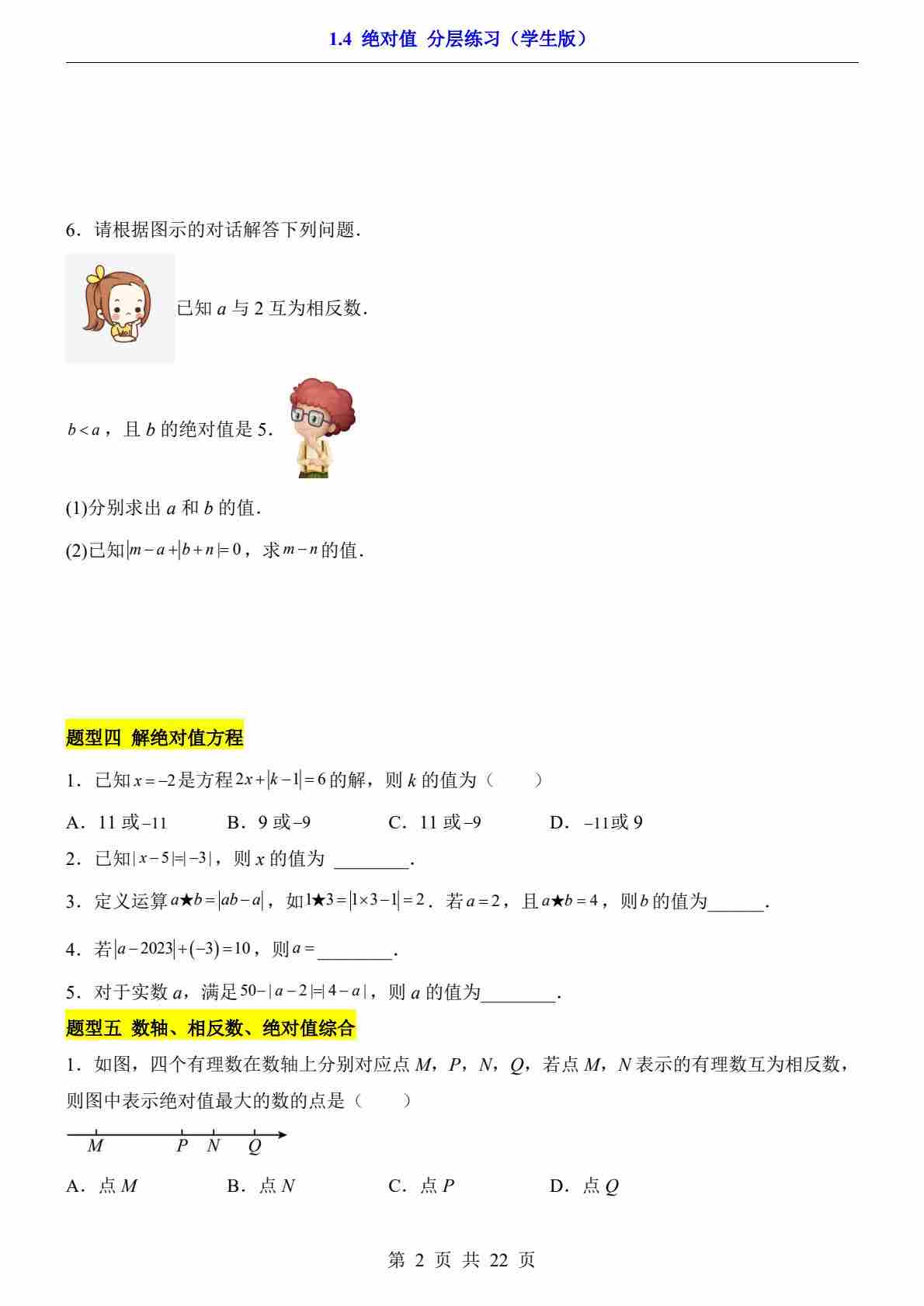 1.4 绝对值(分层练习)