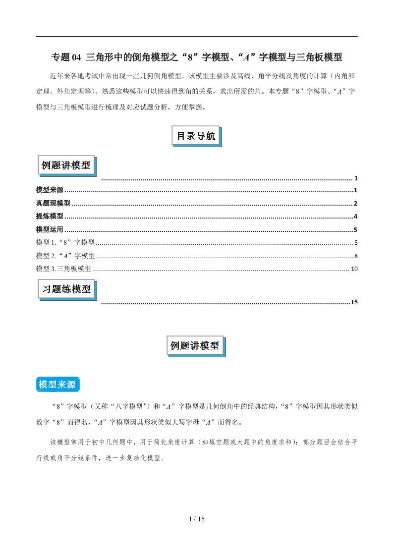 首页 > 全部 > 几何模型 > 专题04 三角形中的倒角模型之“8”字模型、“A”字模型与三角板模型(几何模型讲义)数学人教版2024八年级上册(原卷版)