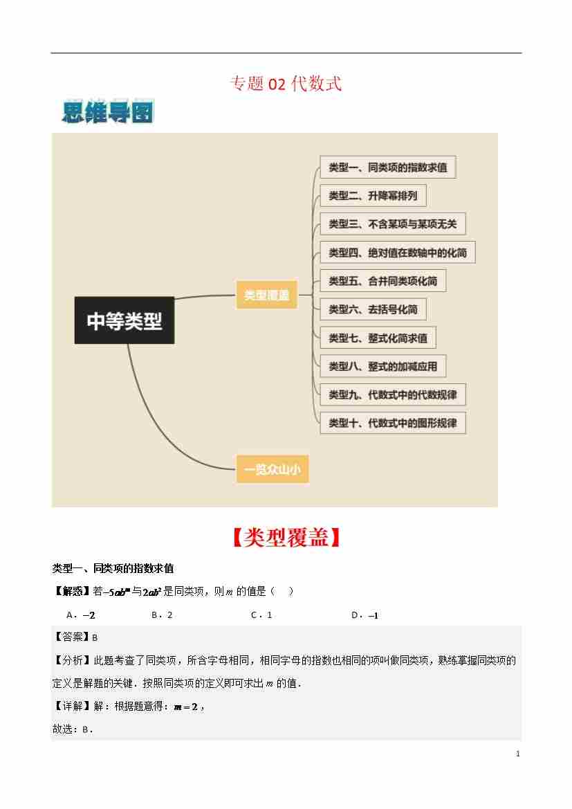 首页 > 全部 > 拔高练习 > 专题02 代数式(解析版)(中等类型)-七年级数学上册考点解惑【基础•中等•优质】题型过关专练(苏科版2024新教材)
