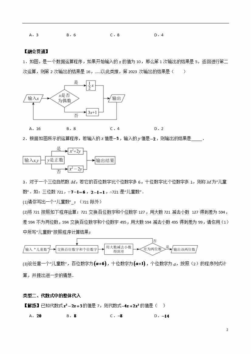 首页 > 全部 > 拔高练习 > 专题02 代数式(原卷版)(优质类型)-七年级数学上册考点解惑【基础•中等•优质】题型过关专练(苏科版2024新教材)