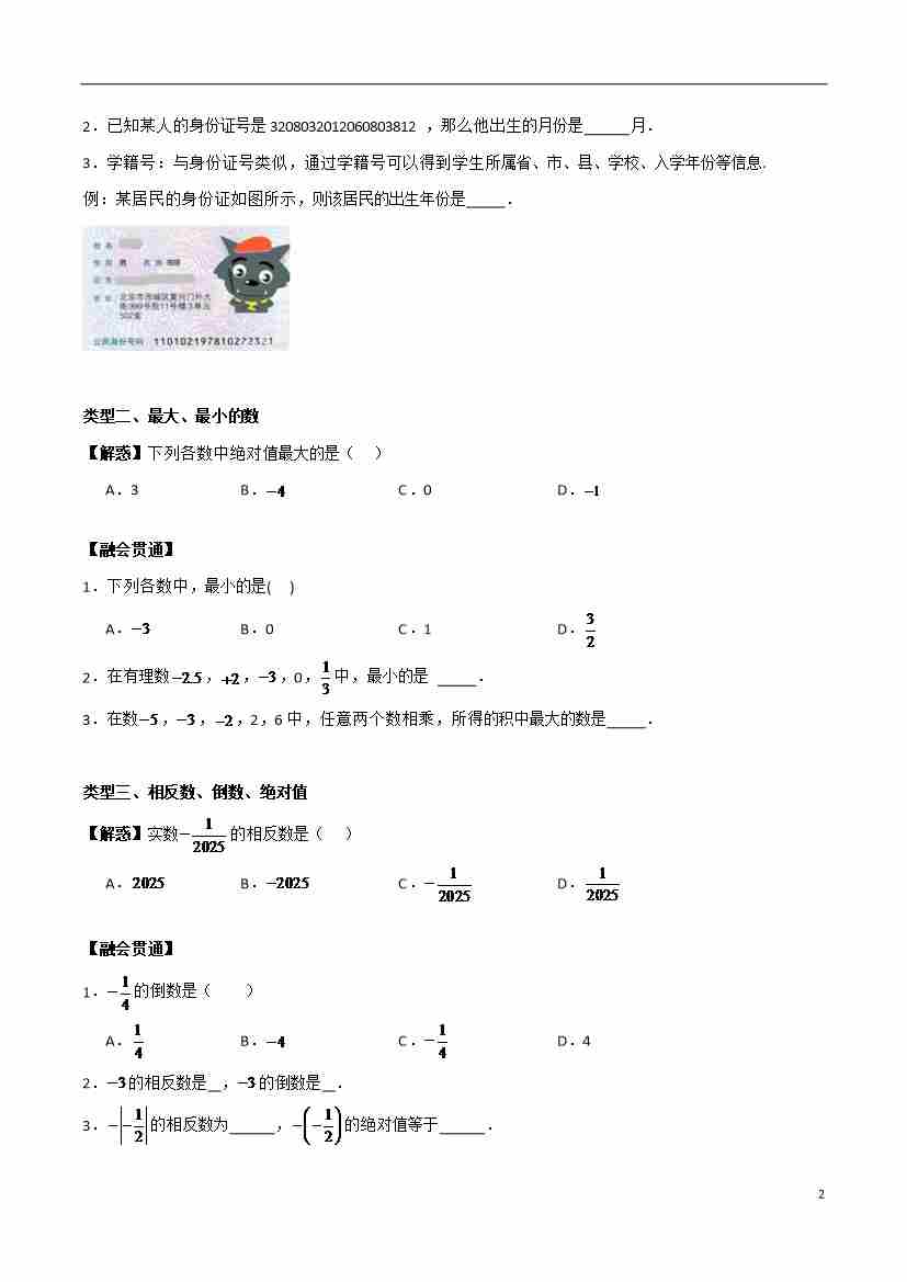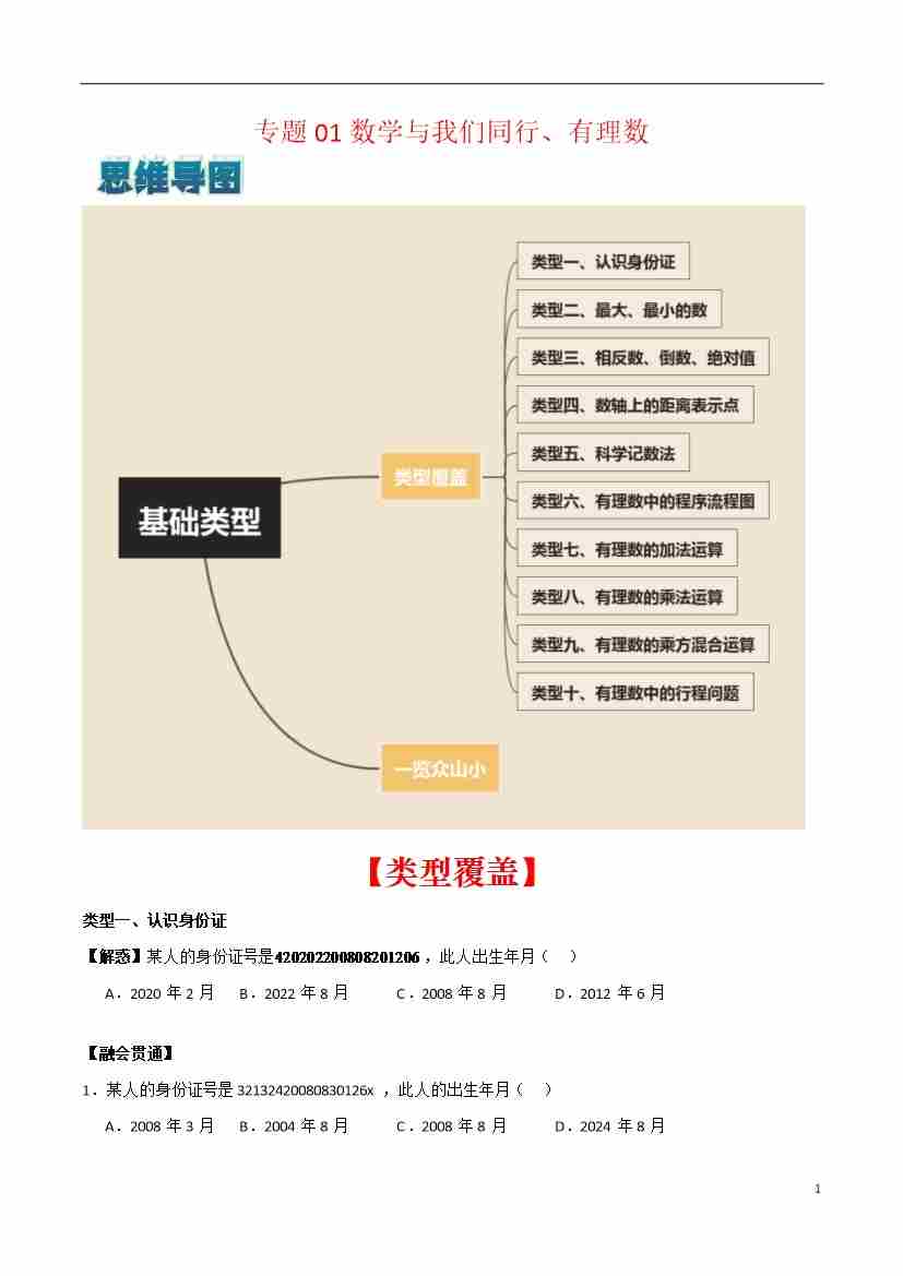 首页 > 全部 > 拔高练习 > 专题01 数学与我们同行、有理数(基础类型)(原卷版)-七年级数学上册考点解惑【基础•中等•优质】题型过关专练(苏科版2024新教材)