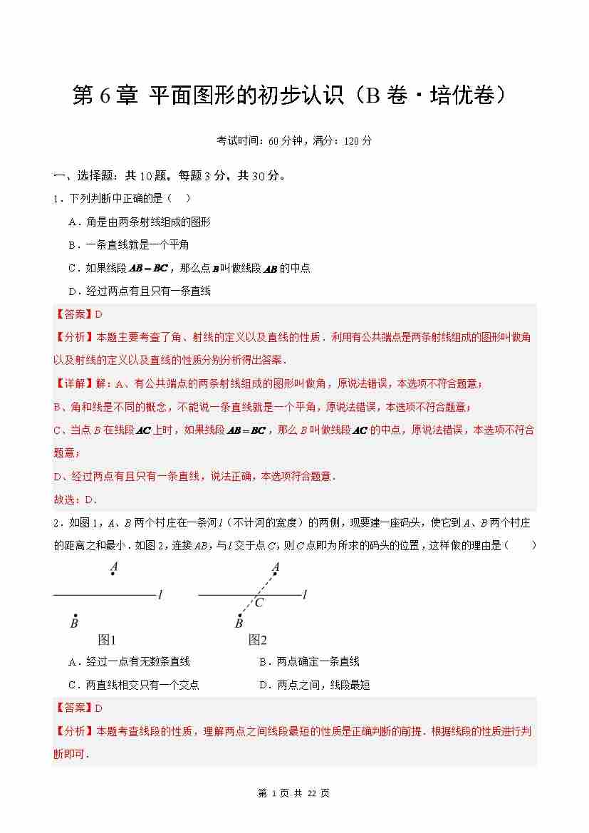 首页 > 全部 > 单元测试 > 第6章 平面图形的初步认识(B卷·培优卷 单元重点综合测试)(解析版)