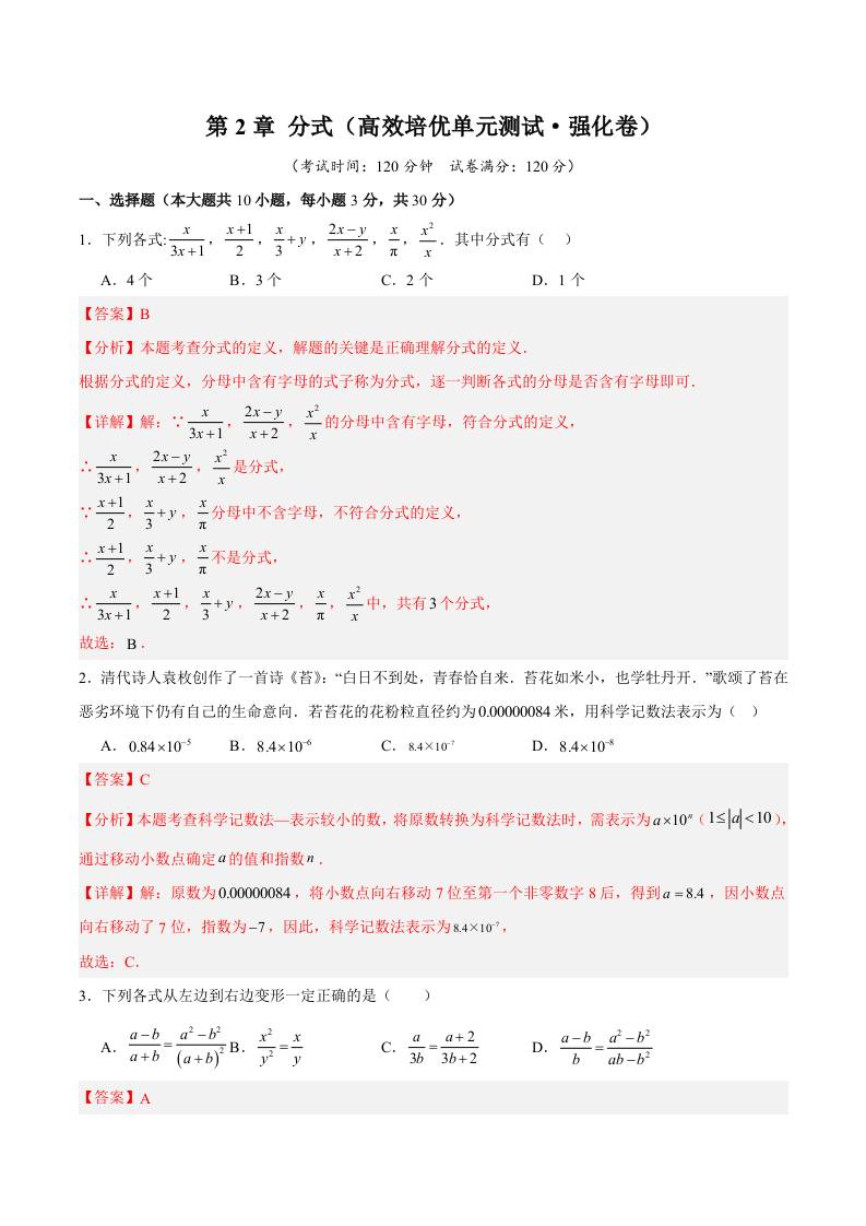 第2章 分式(高效培优单元测试·强化卷)(教师版)