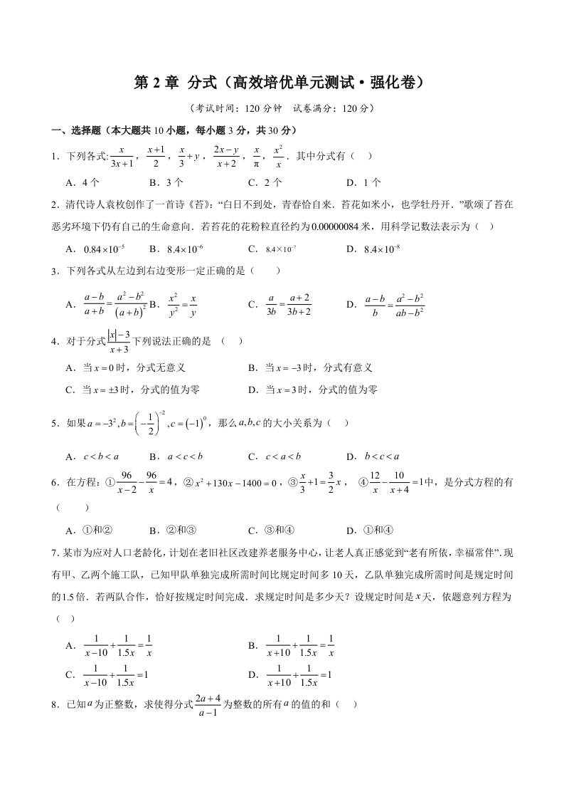 第2章 分式(高效培优单元测试·强化卷)(学生版)