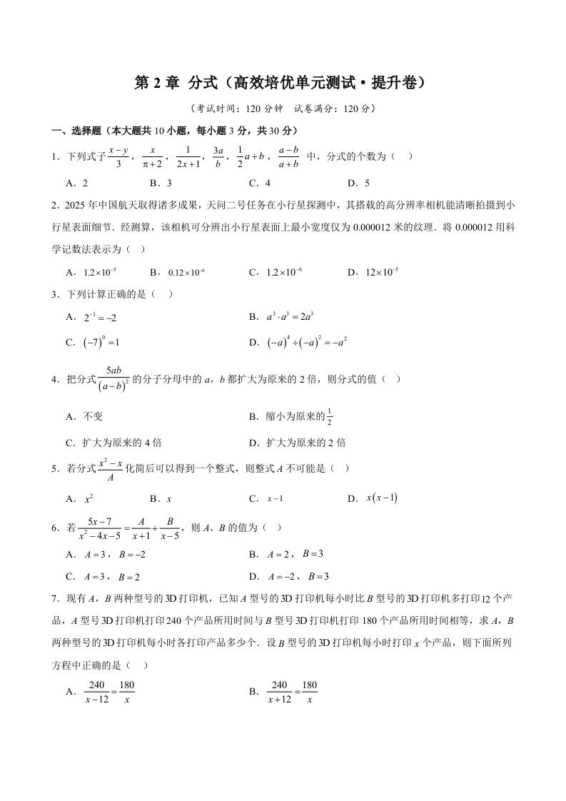 第2章 分式(高效培优单元测试·提升卷)(学生版)