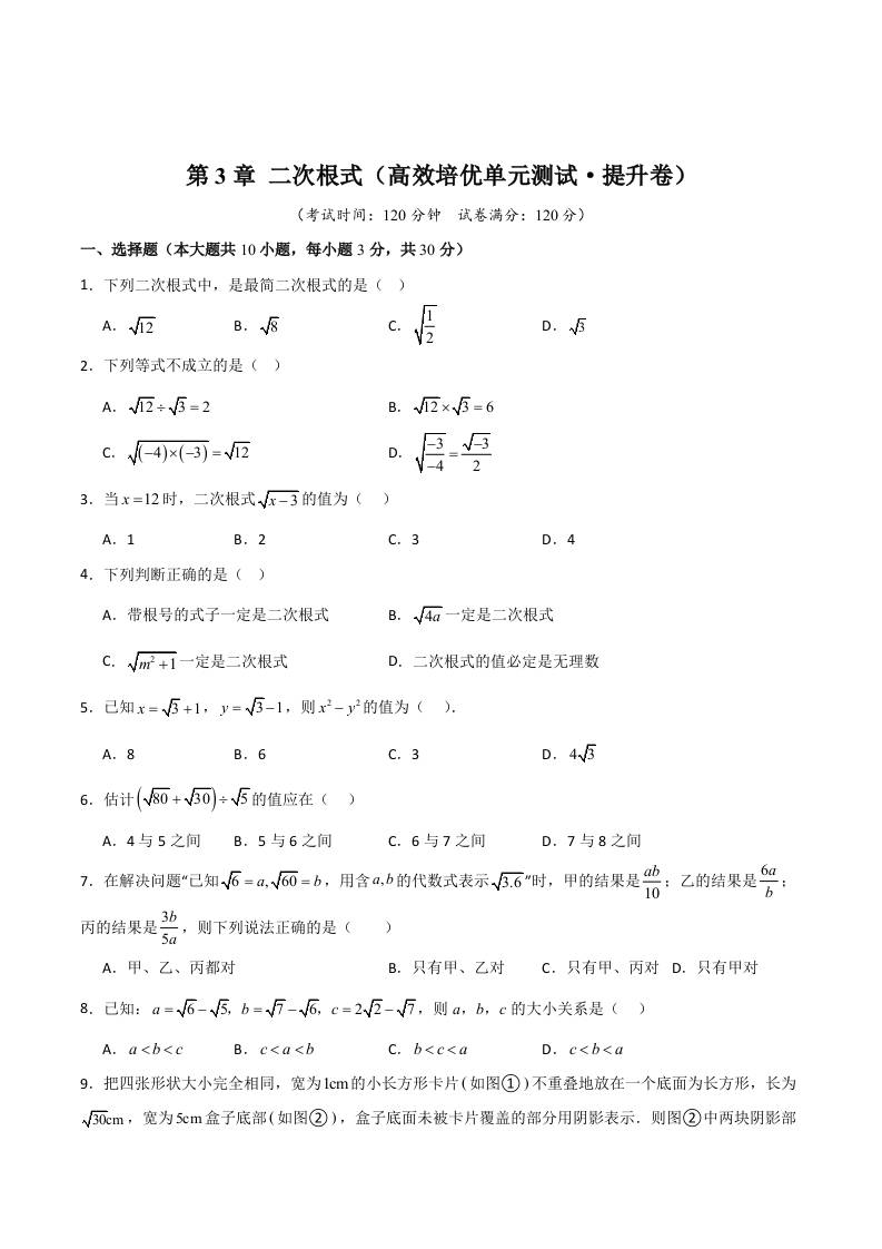 第3章 二次根式(高效培优单元测试·提升卷)(学生版)