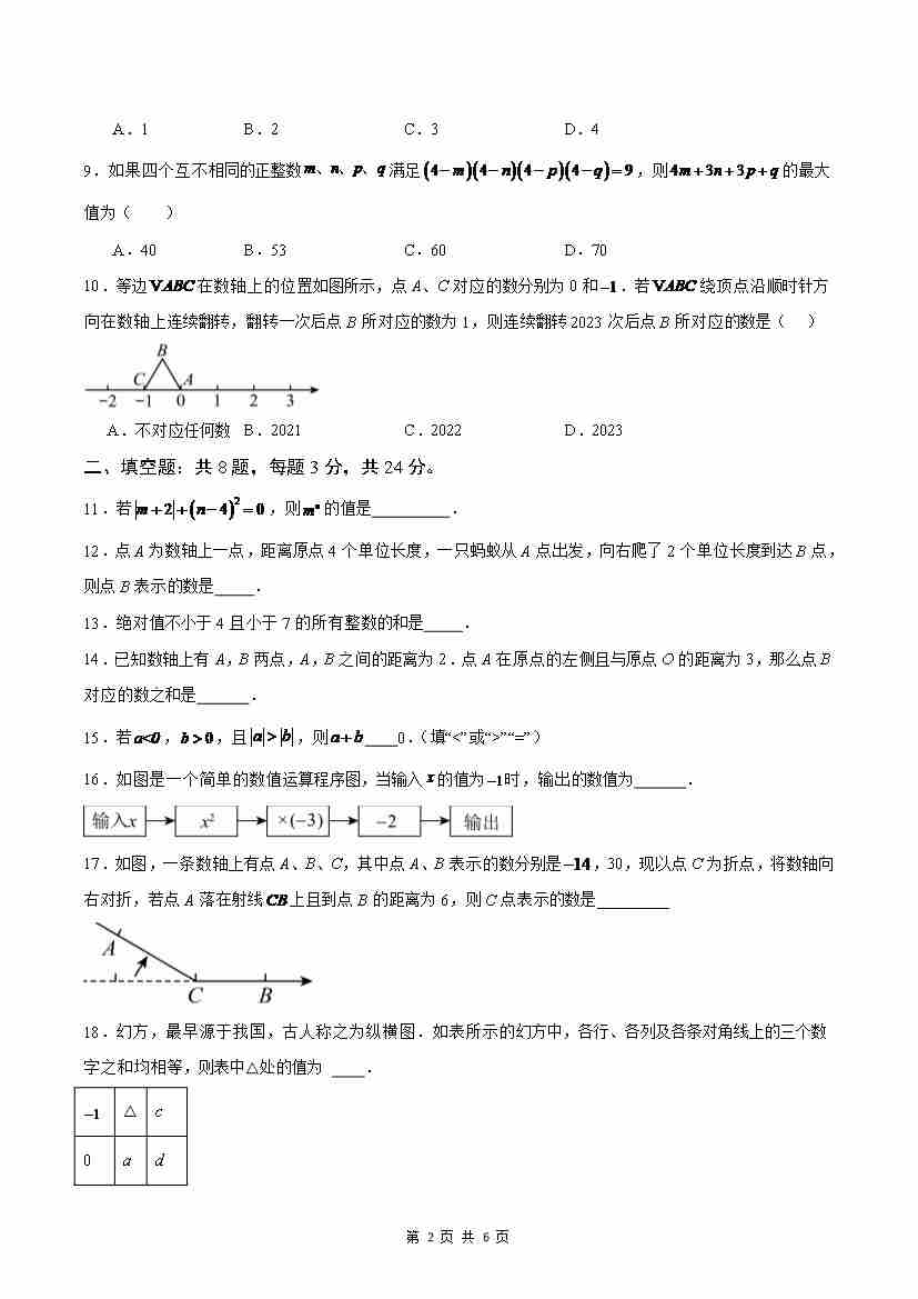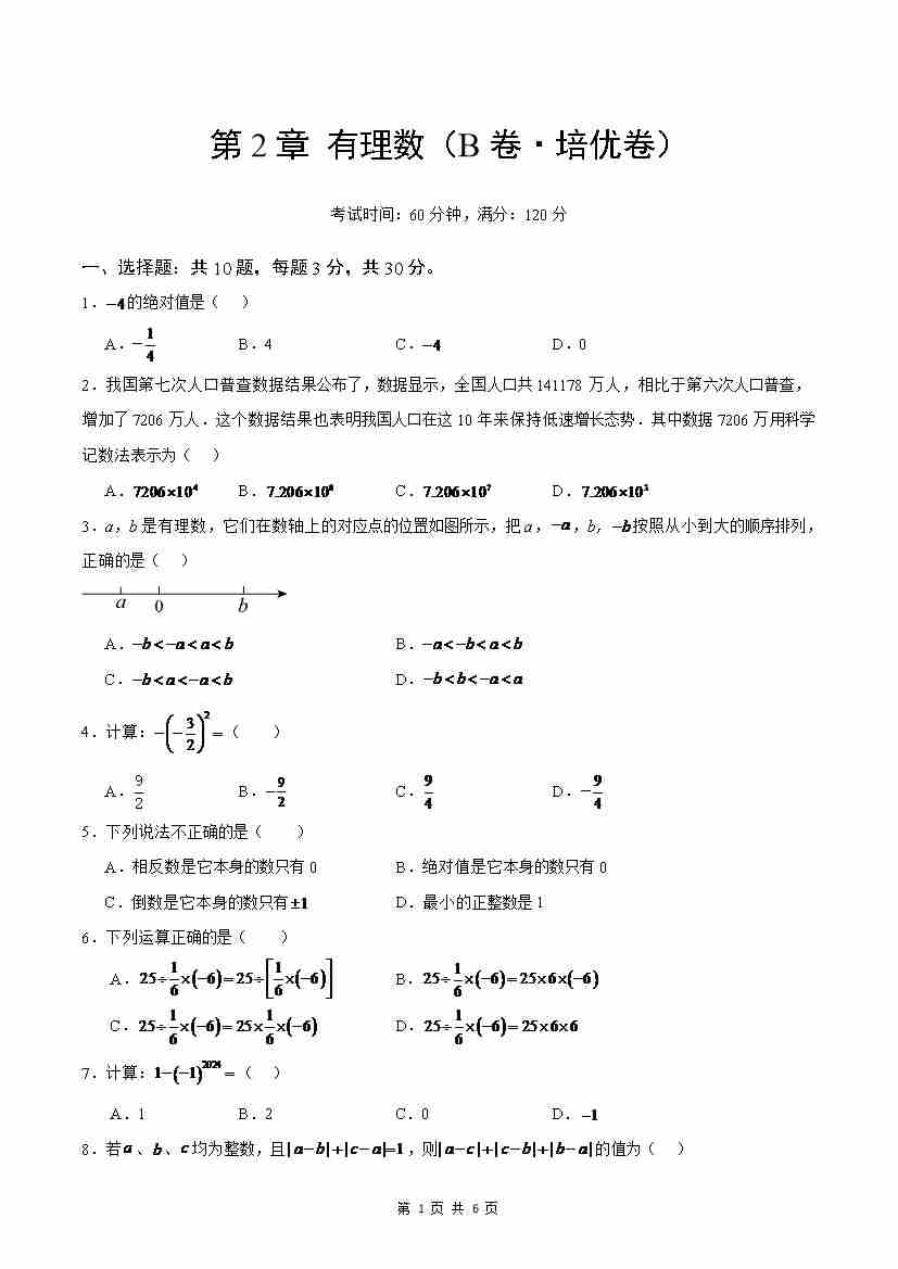 首页 > 全部 > 单元测试 > 第2章 有理数(B卷·培优卷 单元重点综合测试)(原卷版)