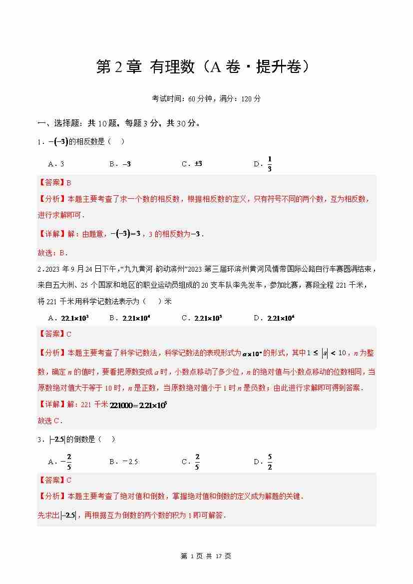 第2章 有理数(A卷·提升卷 单元重点综合测试)(解析版)